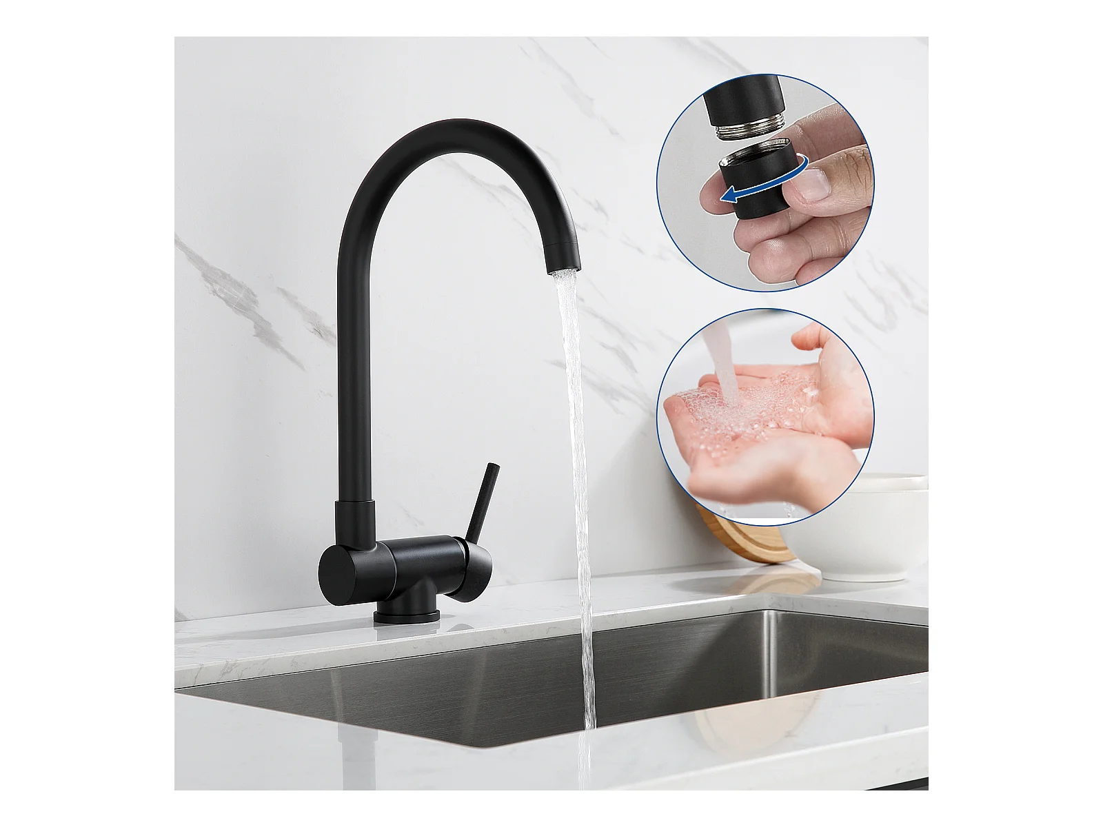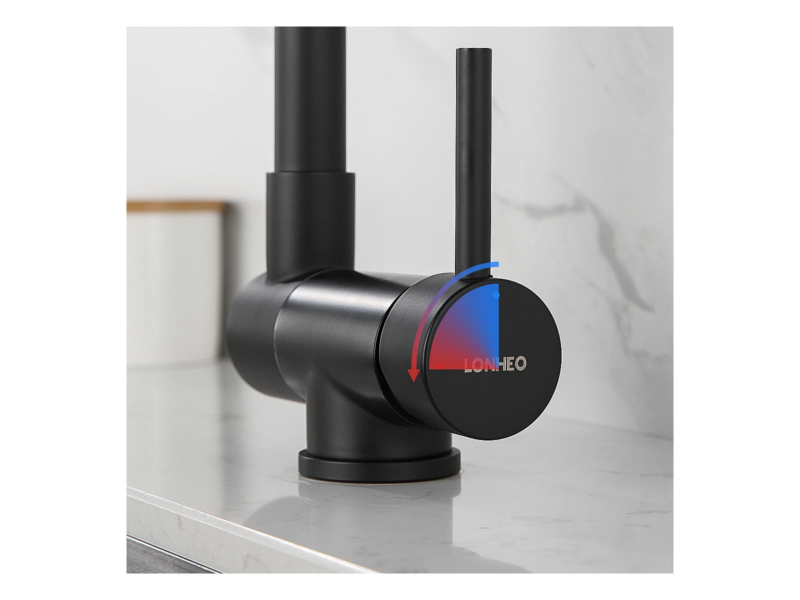 Robinet de cuisine avec douchette extractible en acier inoxydable - Noir mat - ROFLEX