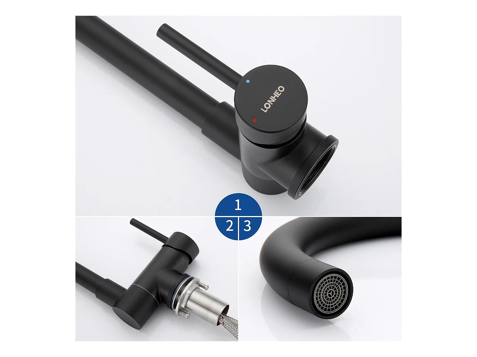 Lonheo MAX Mitigeur Cuisine Rabattable Pivotant à 360°Robinet de Cuisine avec Poignée Pliable Contre Fenêtre Robinet Evier Acier Inox 304