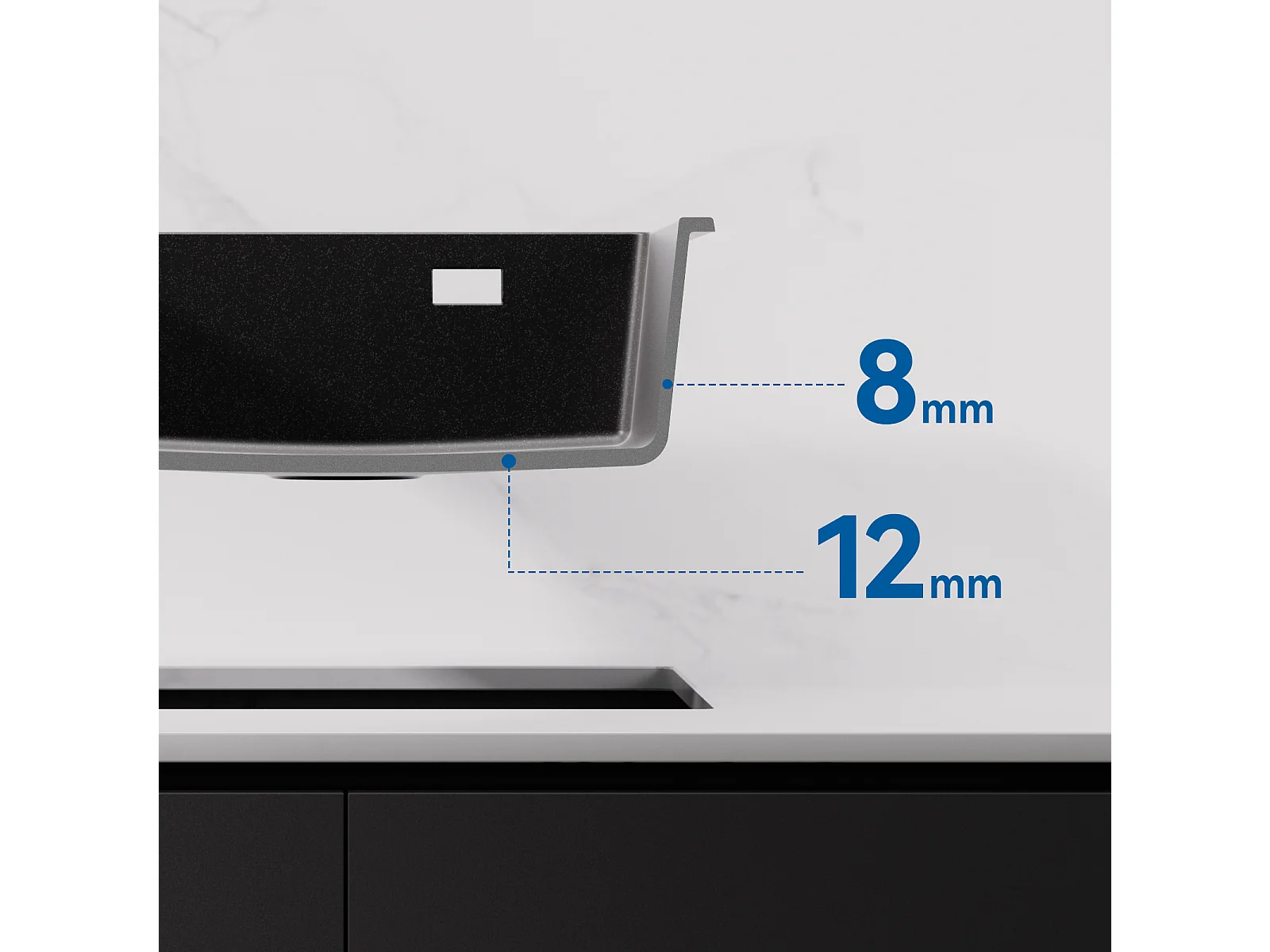 Évier Cuisine 1 Bac,en Granit,55*45*20cm,Kit de Vidage,Évier Cuisine Encastré,Trous de Montage pour Robinet/Distributeur Savon,Noir,EU Modèle