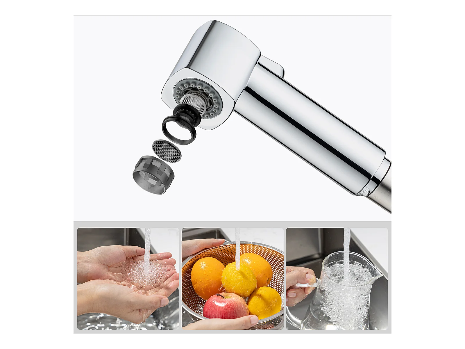 NETTLIFE Robinet de cuisine avec pomme de douche extensible, à haute pression, en acier inoxydable à jet double et pivotant à 360 °, Nickel