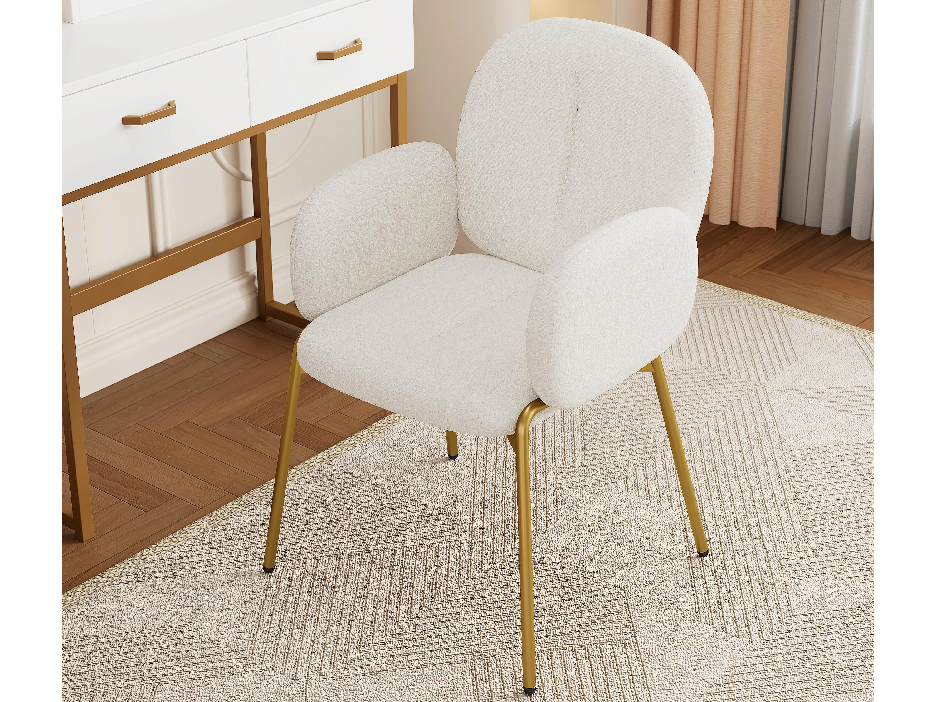 1 Chaise en teddy - pieds en métal doré - chaise de coiffeuse - chaise de salle à manger - Beige