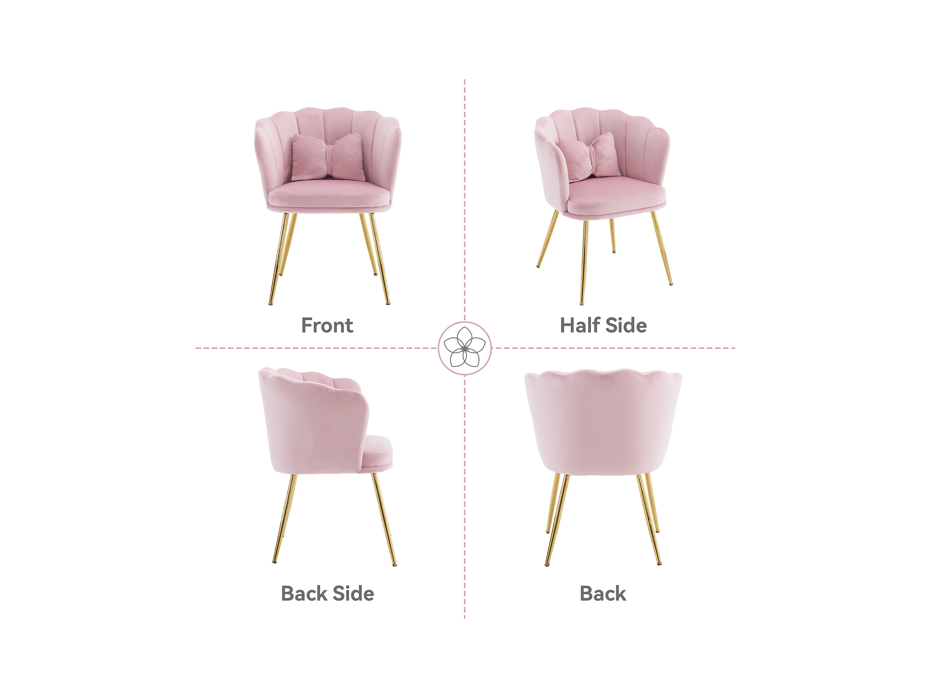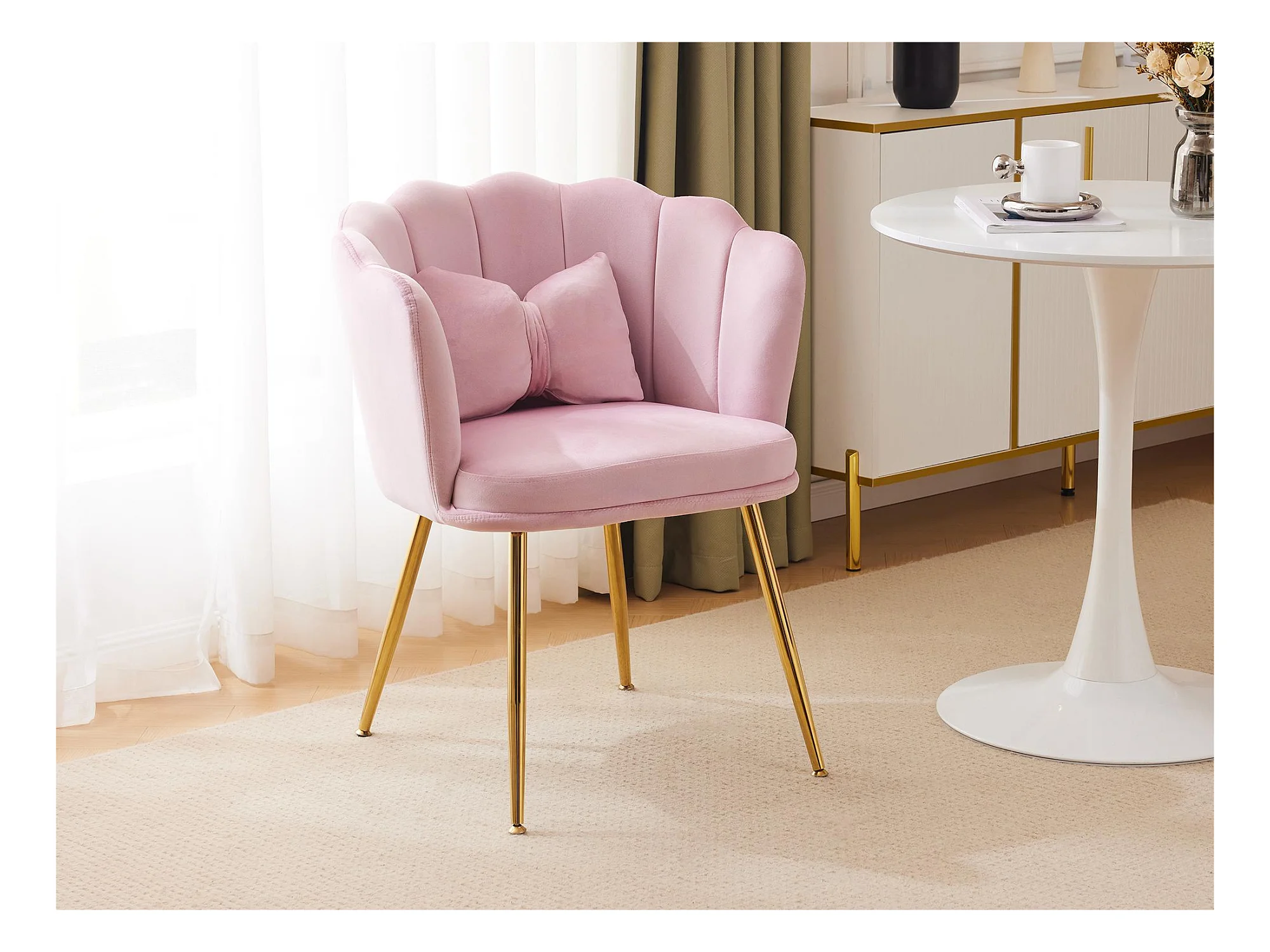 1 Chaise en velours - avec dossier en forme de pétale - pieds en métal doré - Rose