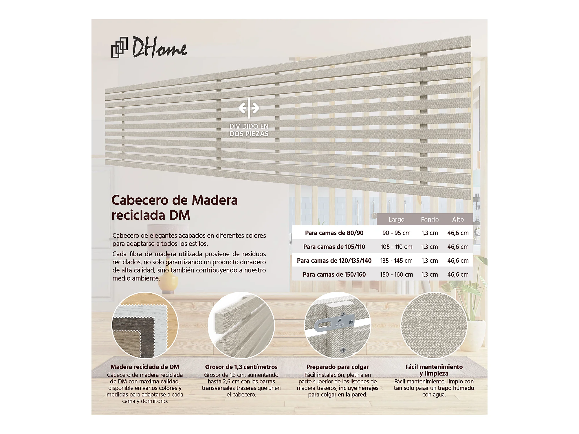 11. DHOME Tête de Lit DM Bois Recyclé Double Style Palette Japonaise Divisée en 2 Pièces 210x46cm Lits 220 - Pointes Beiges