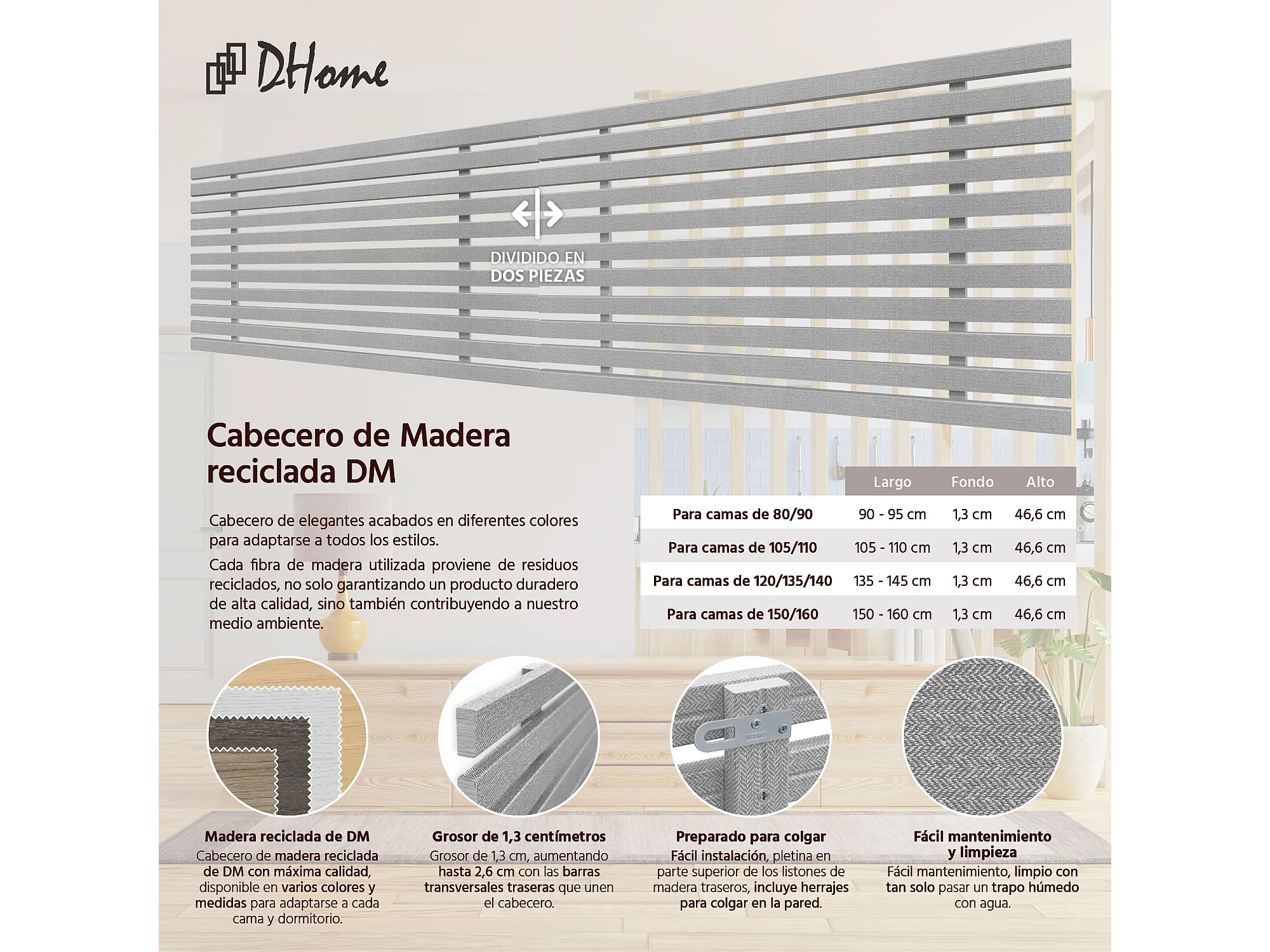 12. DHOME Tête de Lit DM Bois Recyclé Double Style Palette Japonaise Divisée en 2 Pièces 180x46cm Lits 180 - Pointes Grises