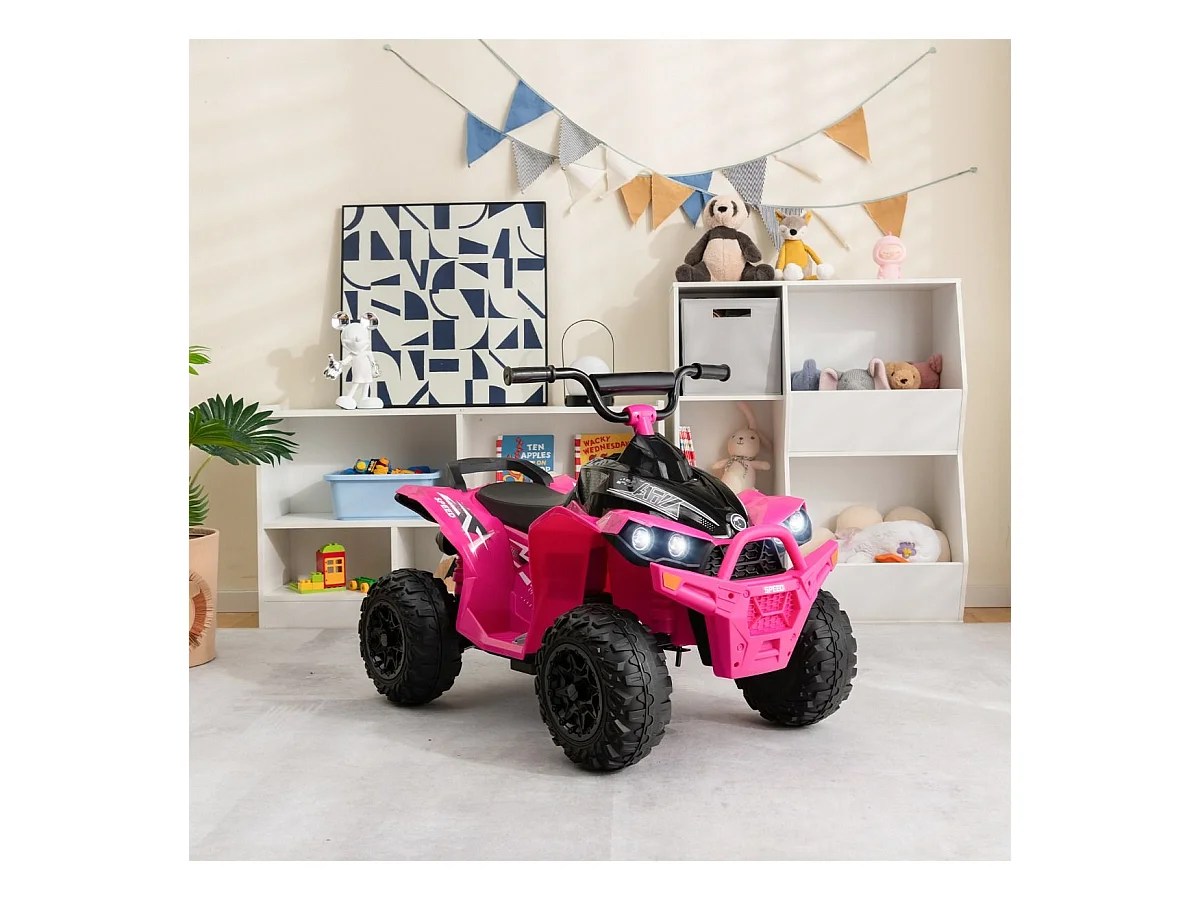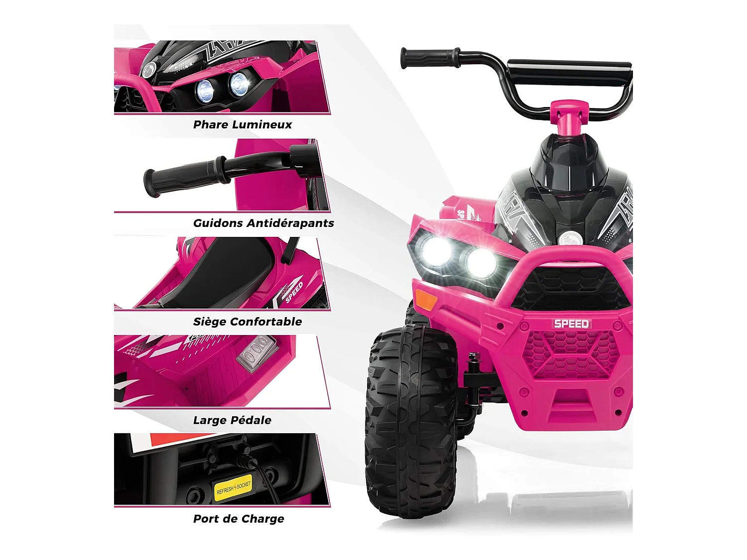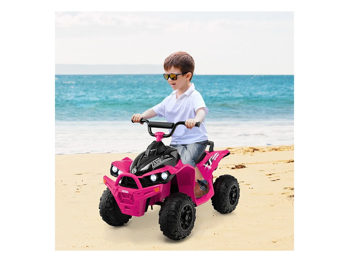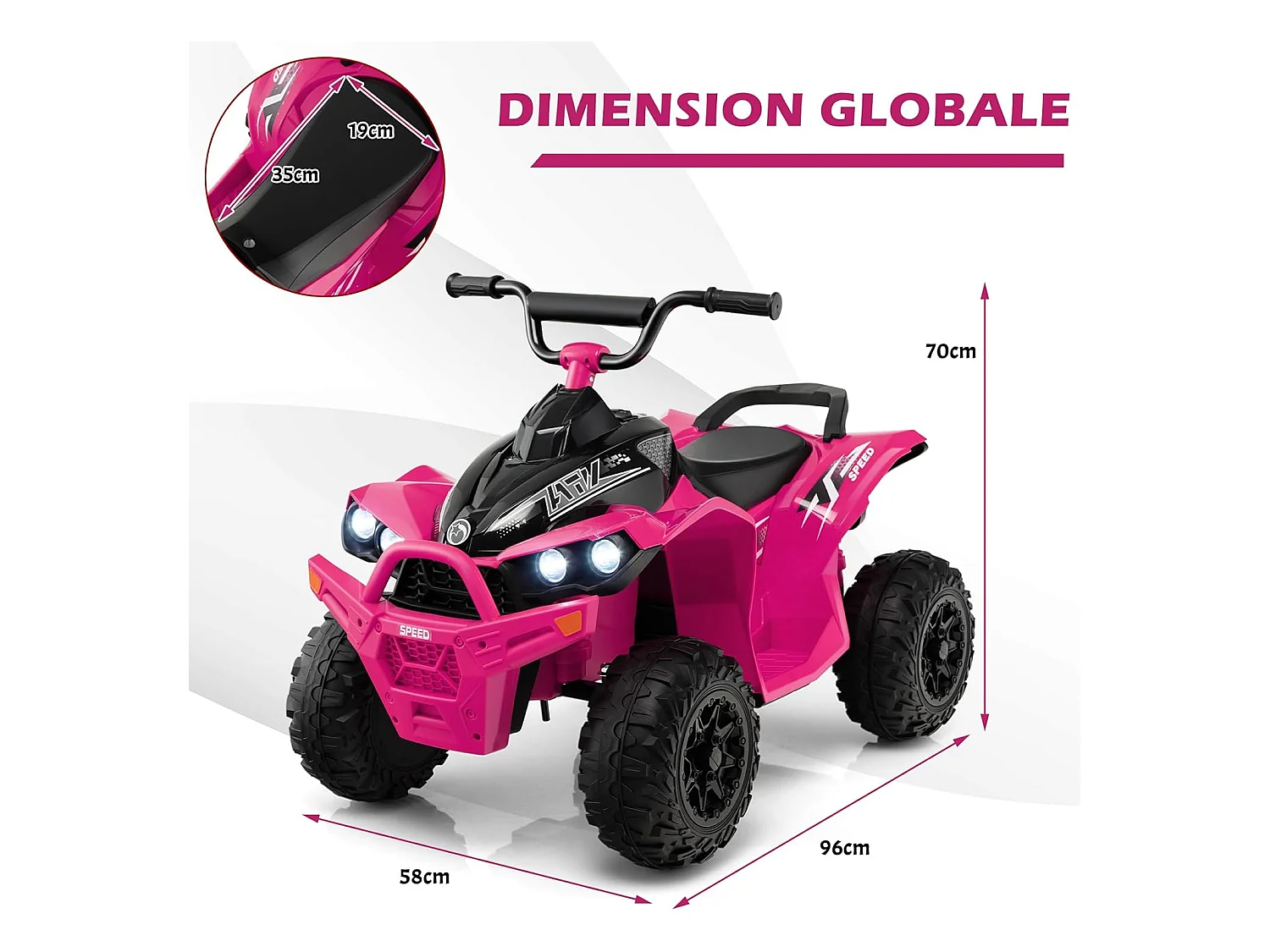 12V Quad Électrique Enfant avec Phares & Musique & Klaxon, Voiture Électrique avec Pédale & Guidon Antidérapant, 2,2/4,3 KM/H, Charge 35kg pour 3-8 Ans (Rose)