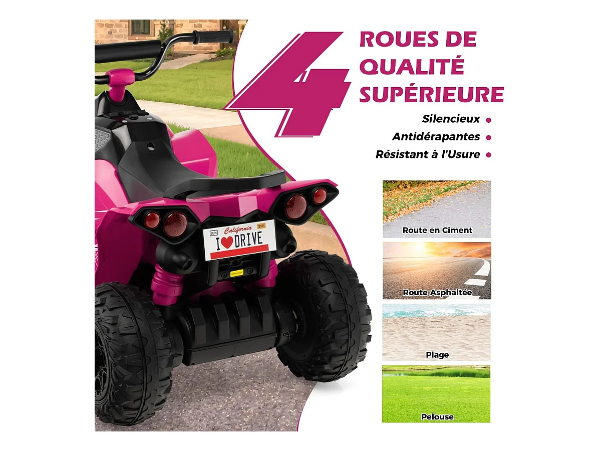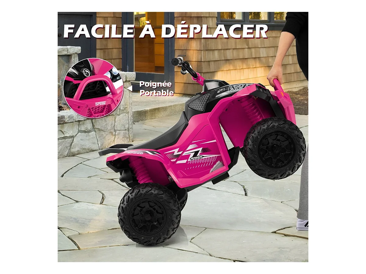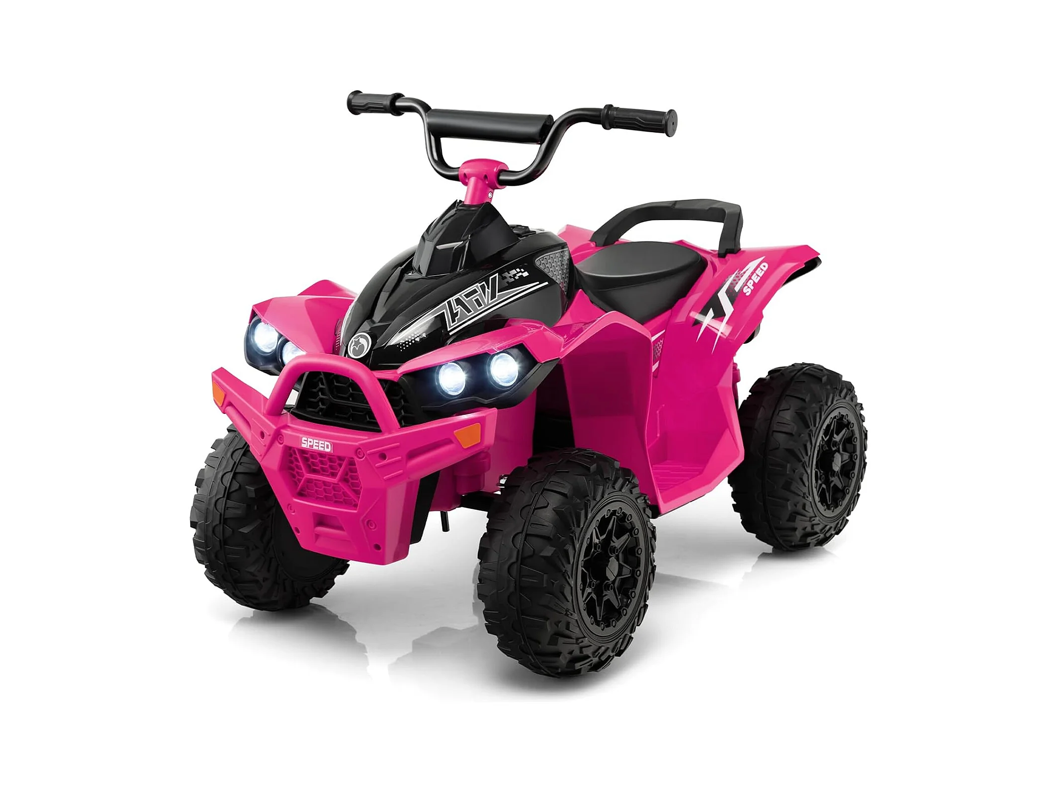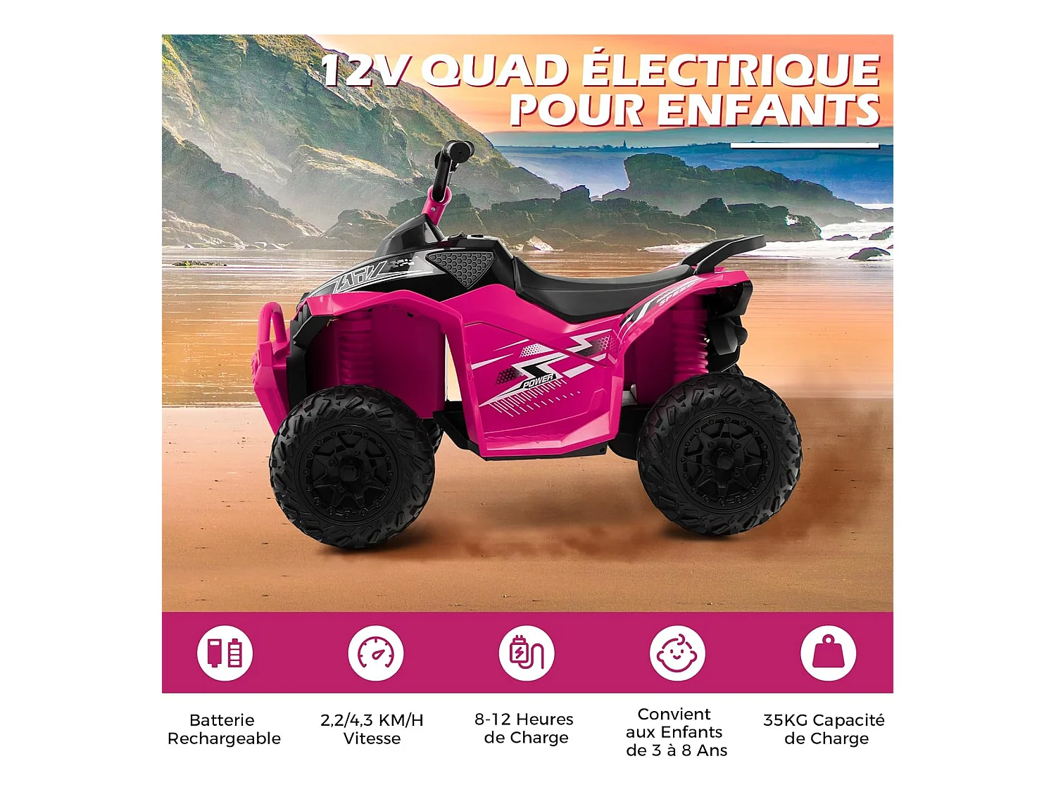 12V Quad Électrique Enfant avec Phares & Musique & Klaxon, Voiture Électrique avec Pédale & Guidon Antidérapant, 2,2/4,3 KM/H, Charge 35kg pour 3-8 Ans (Rose)