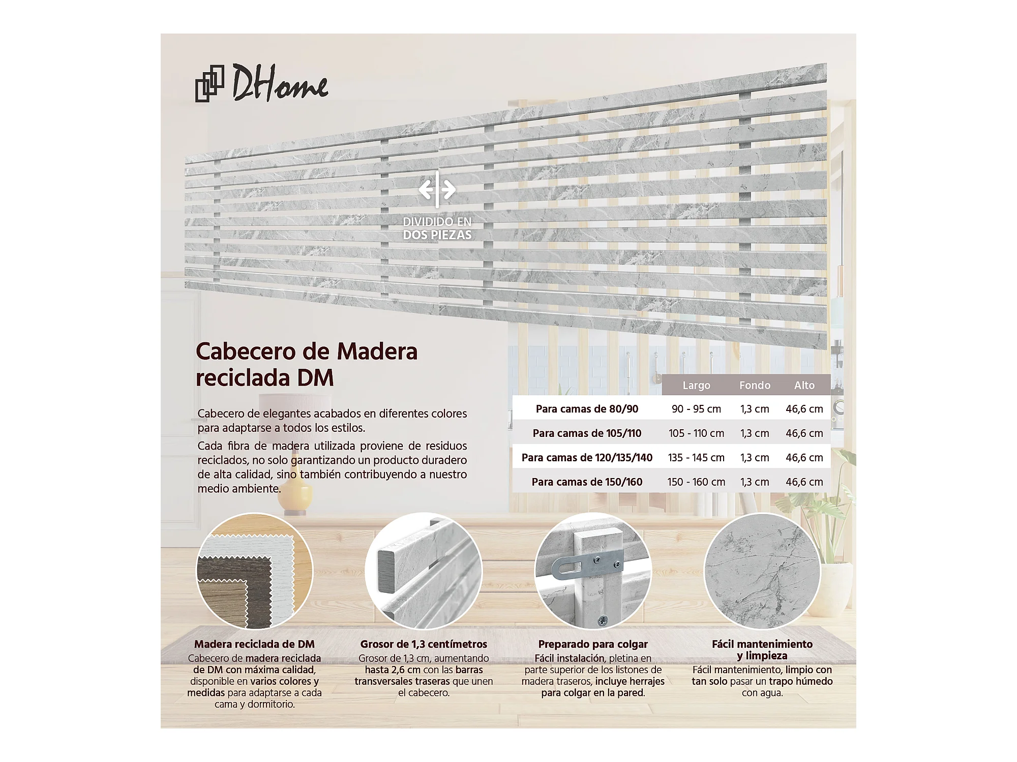 13. DHOME Tête de Lit DM Bois Recyclé Double Style Palette Japonaise Divisée en 2 Pièces 180x46cm Lits 180 - Finition Marbre