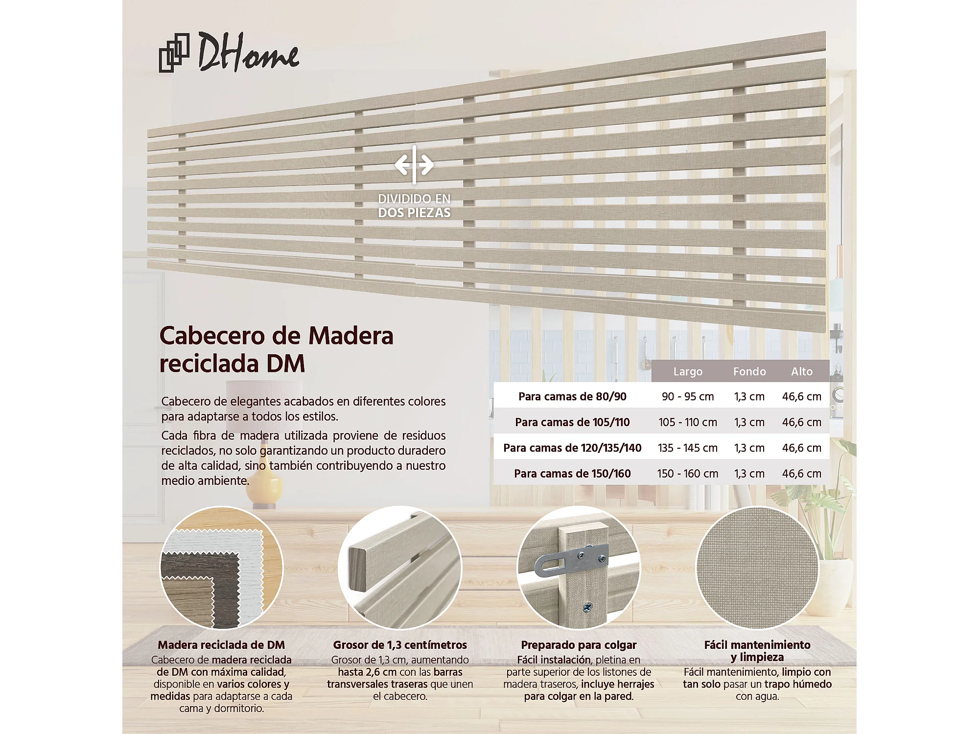 16. DHOME Tête de Lit DM Bois Recyclé Double Style Palette Japonaise Divisée en 2 Pièces 220x46cm Lits 220 - Finition Lin