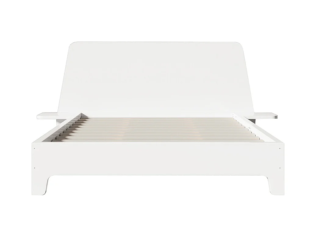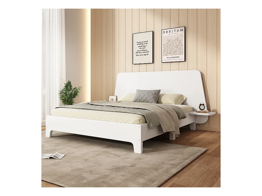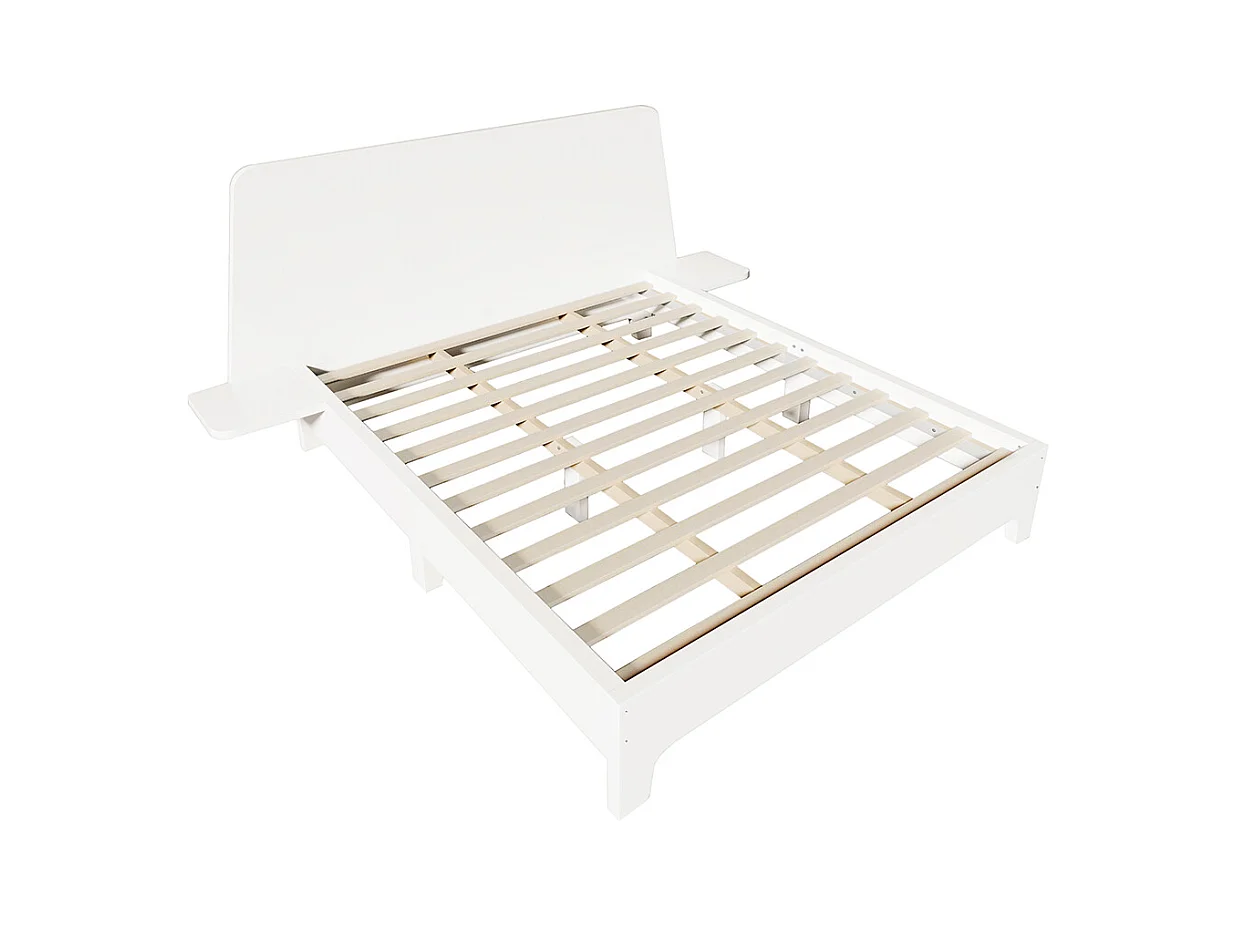 160x200 cm Lit double en bois massif avec tête de lit de rangement et sommier à lattes, blanc (sans matelas)