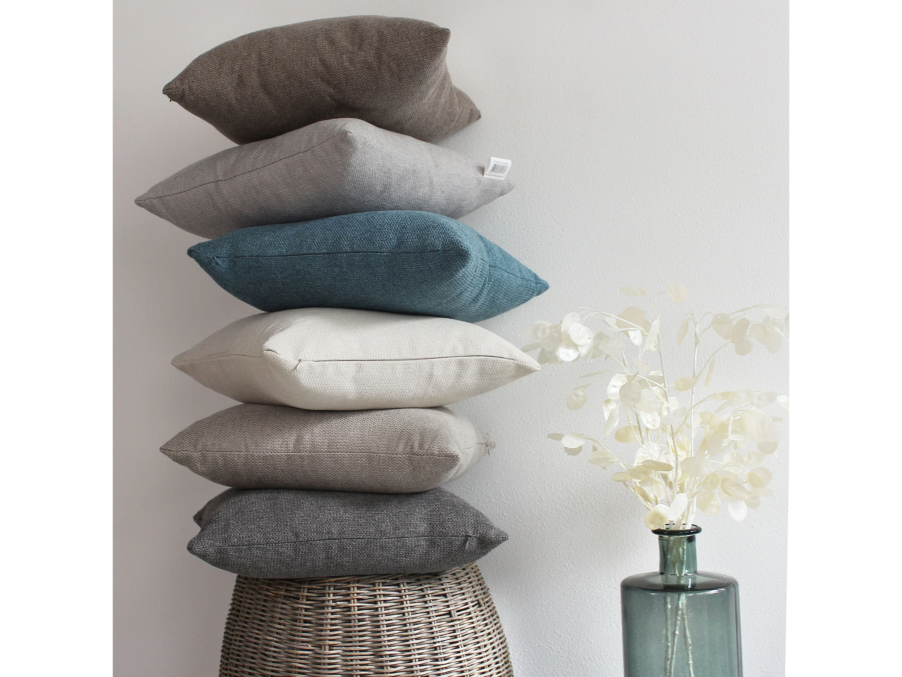 2 coussins canapé carré, déhoussable, gris clair chiné, velours chenillé tramé, collection lagarta