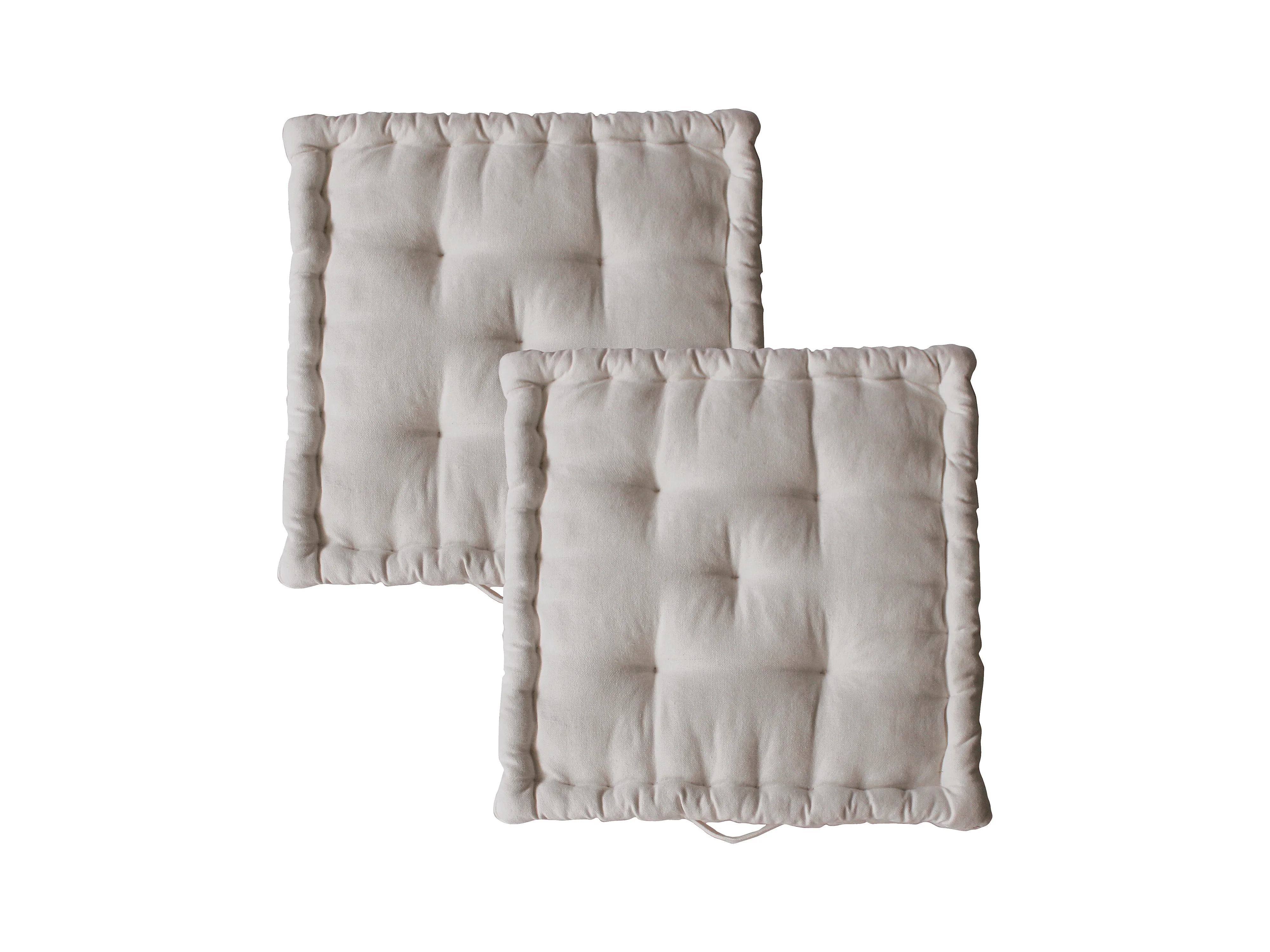 2 Coussins de sol carré avec poignée, 40x40cm, Ecru, Collection Dune