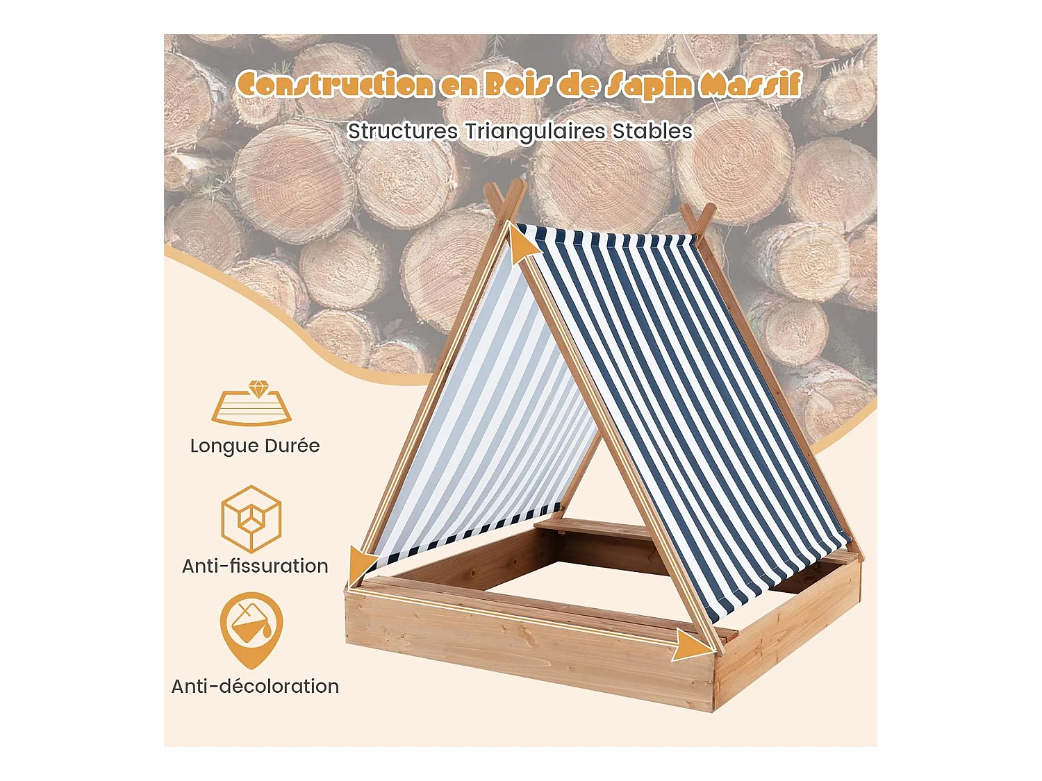 Bac à Sable en Bois, SucceBuy Bac à Sable en Bois avec Auvent Bac à Sable Jardin extérieur 3-12 Ans