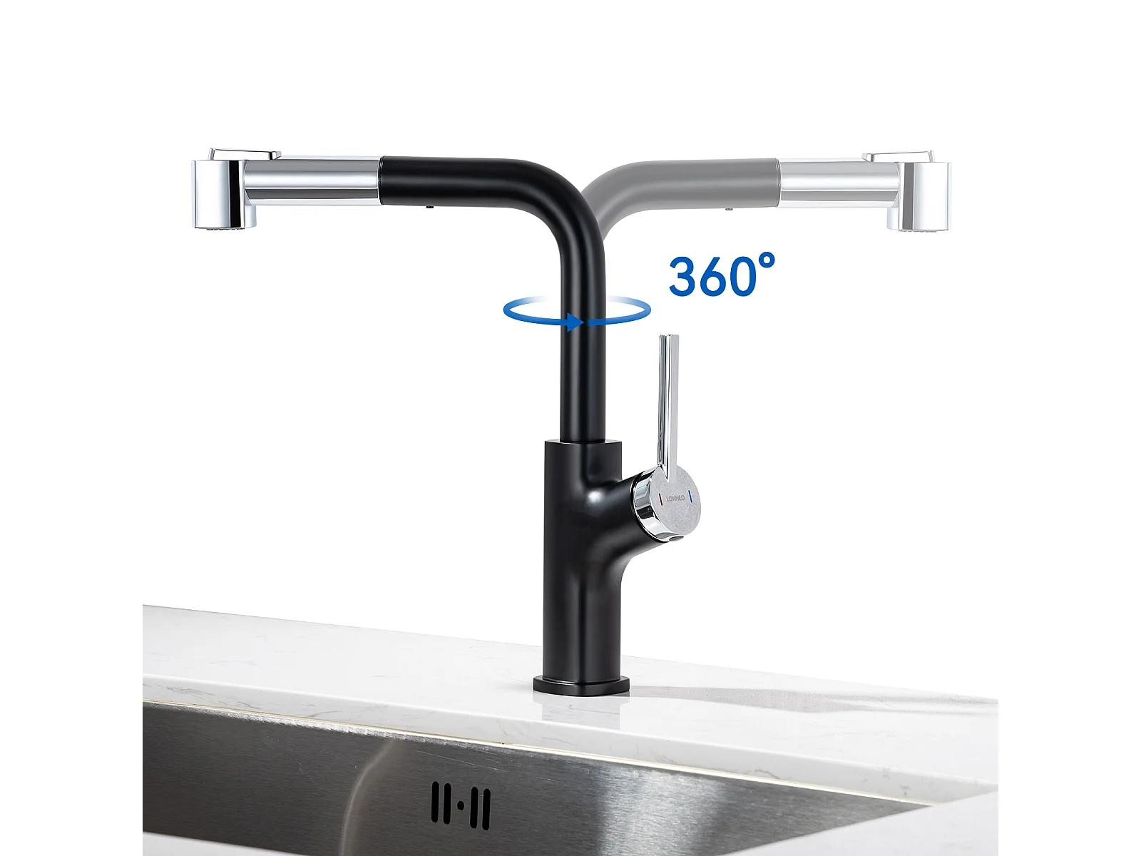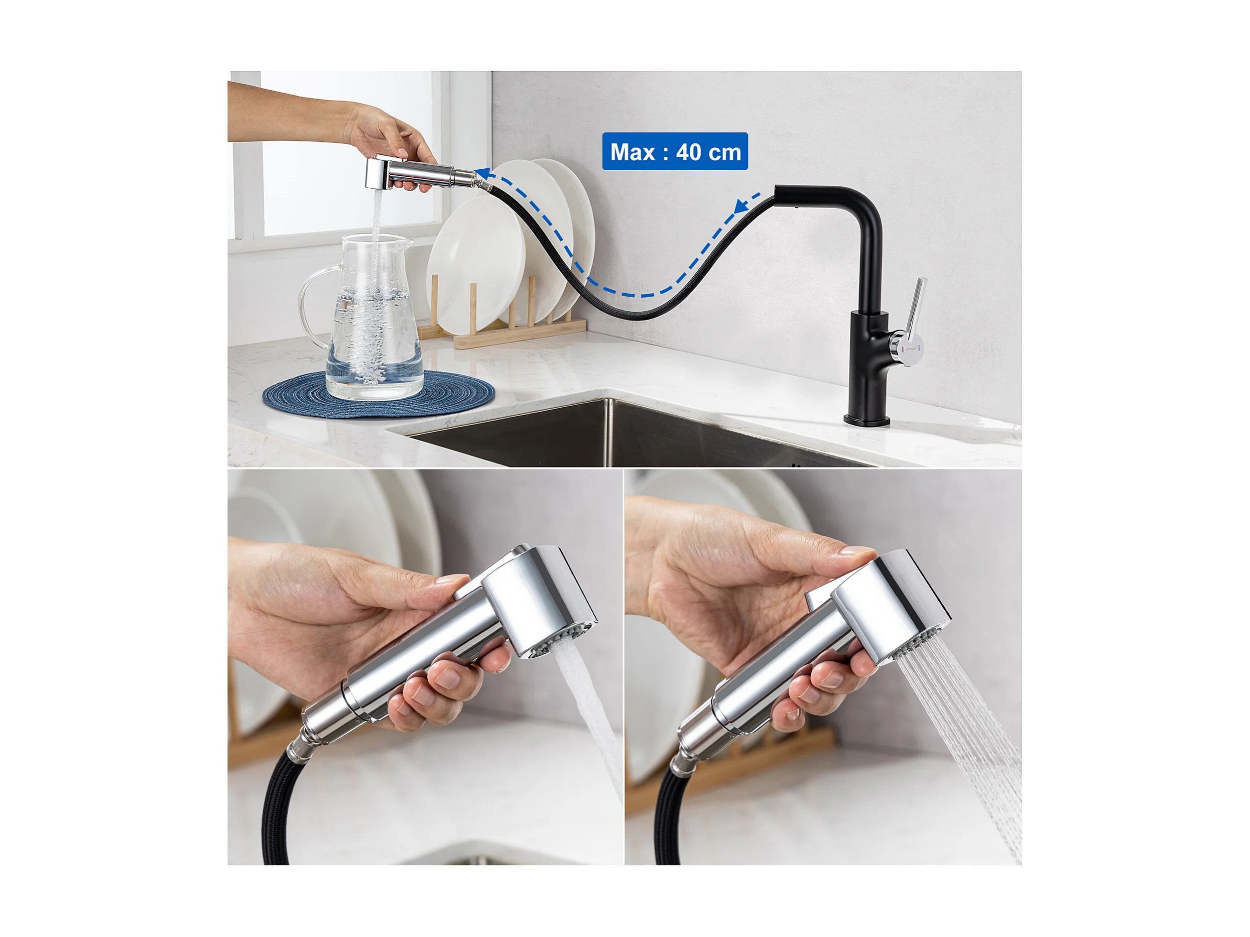 Robinet de cuisine avec douchette extractible en acier inoxydable - Chromé - RONA