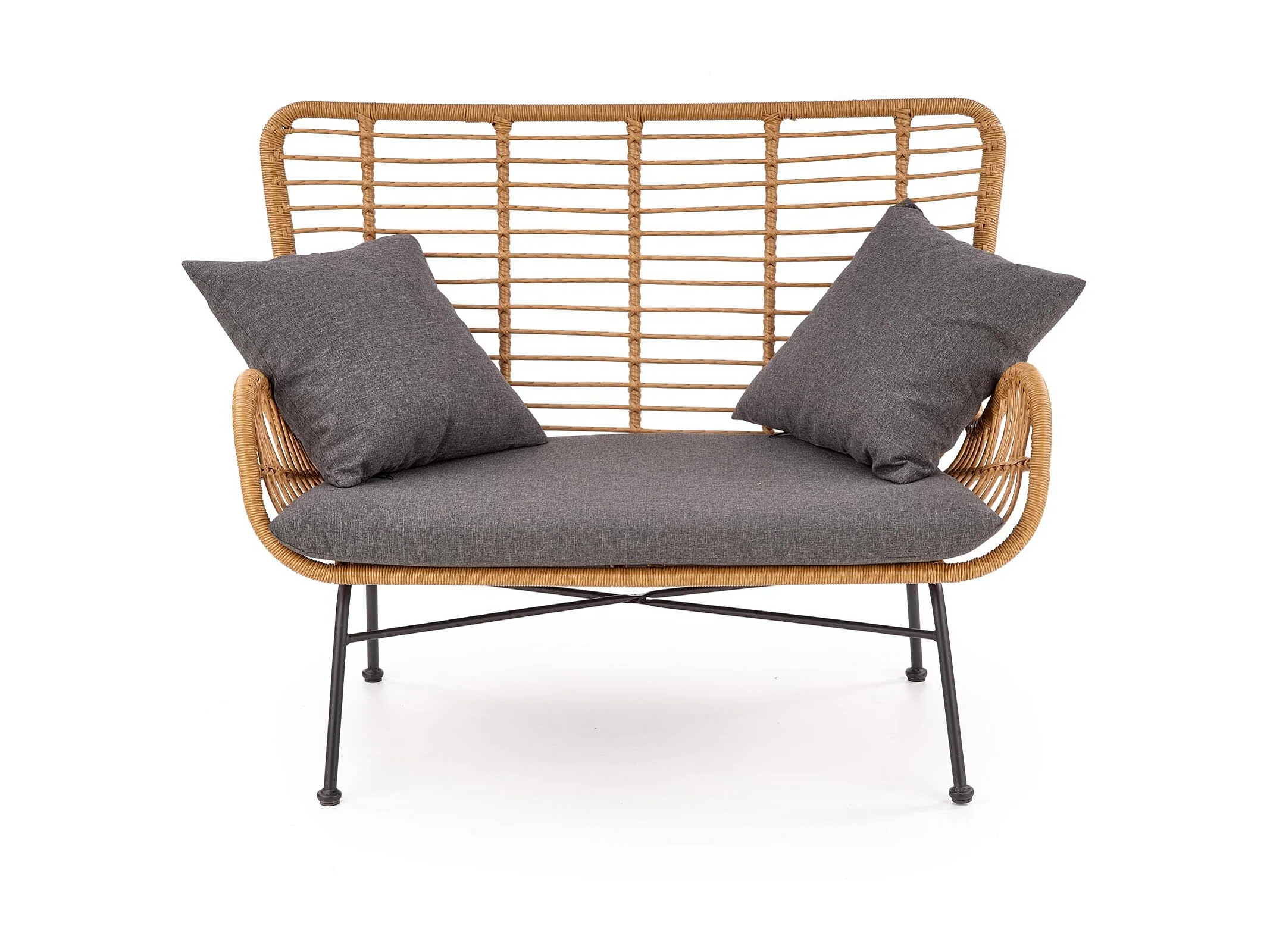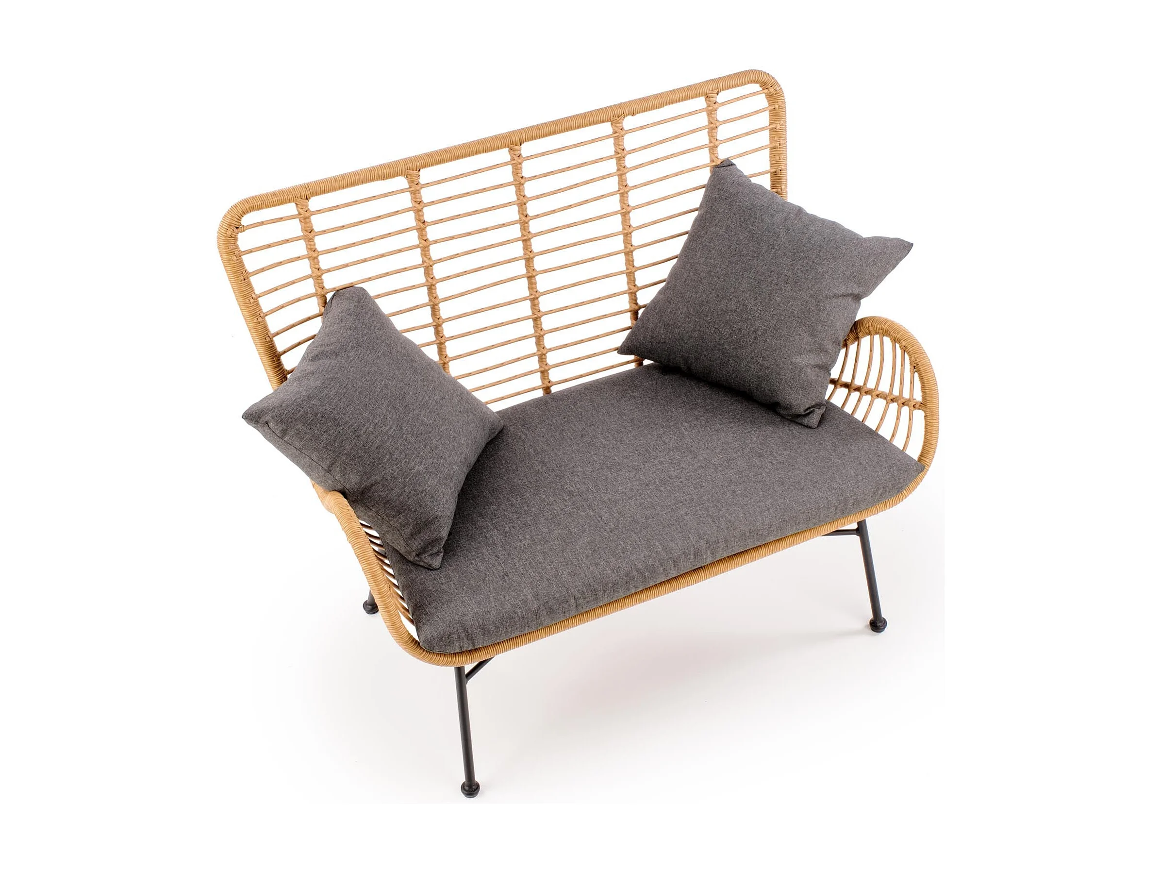 Canapé de jardin 2 places avec table et coussins résine tressée