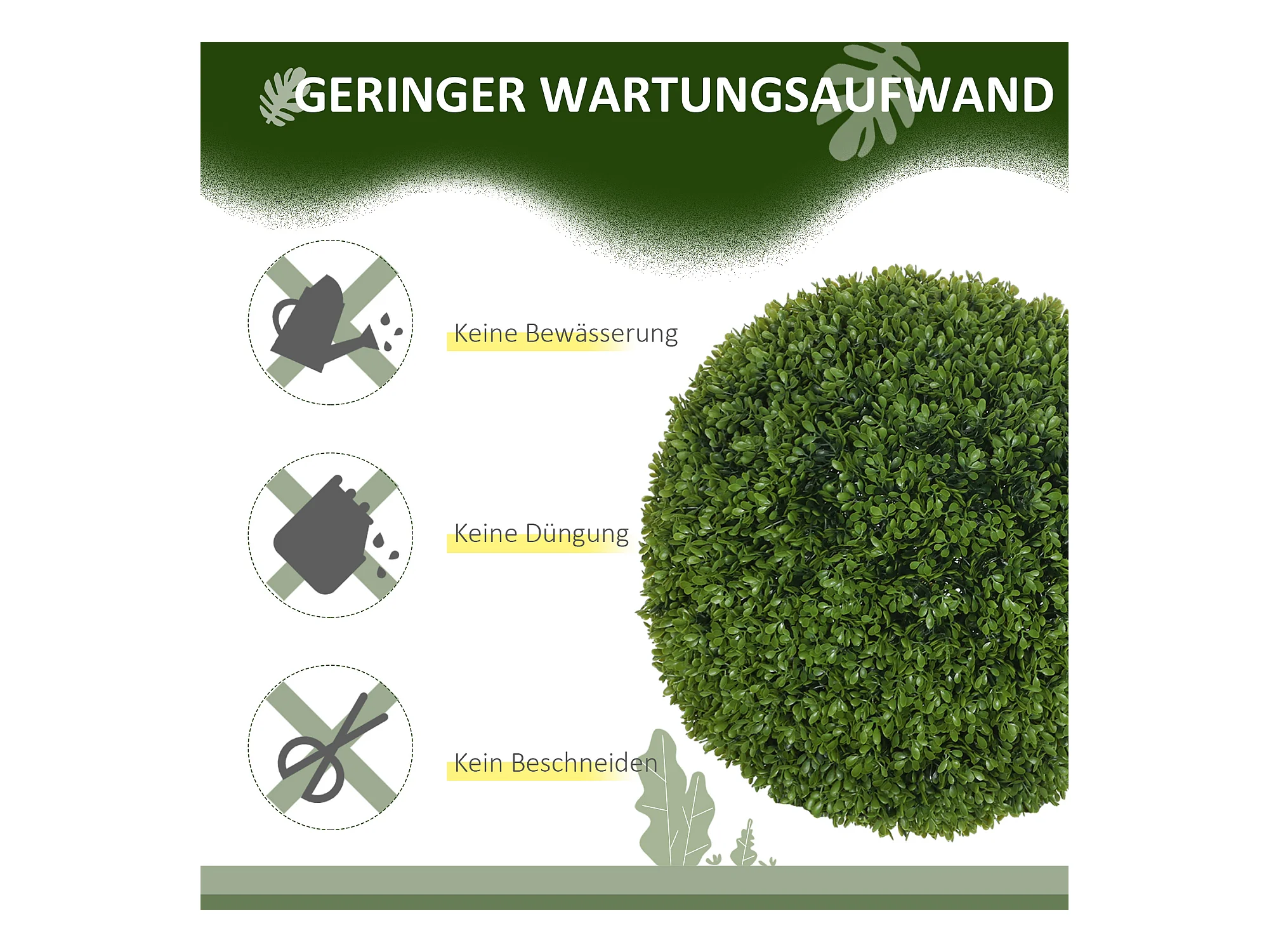 Boule de buis artificielle, UV-protégée, plastique, verte (40x40x40 cm)
