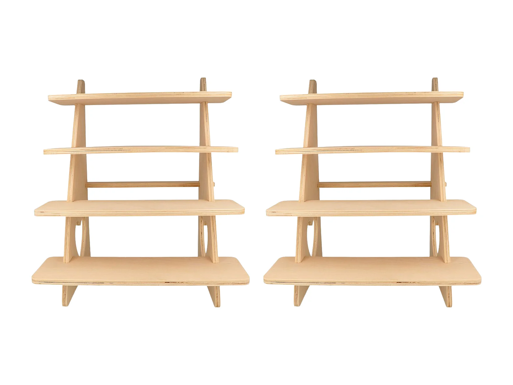 2 présentoirs bois à 4 étagères 38 x 32 x 26 cm