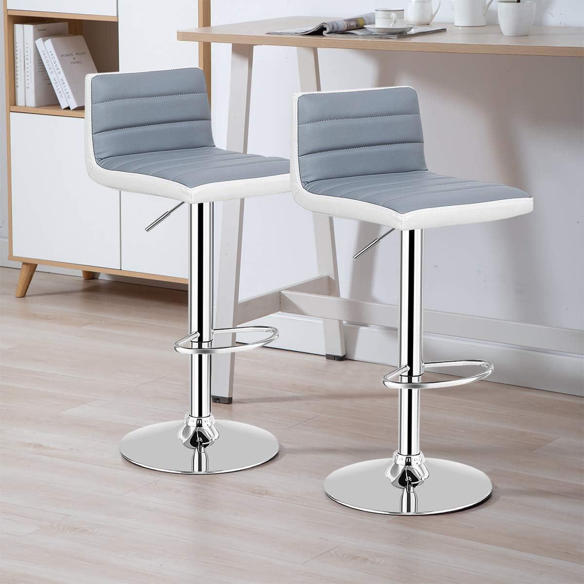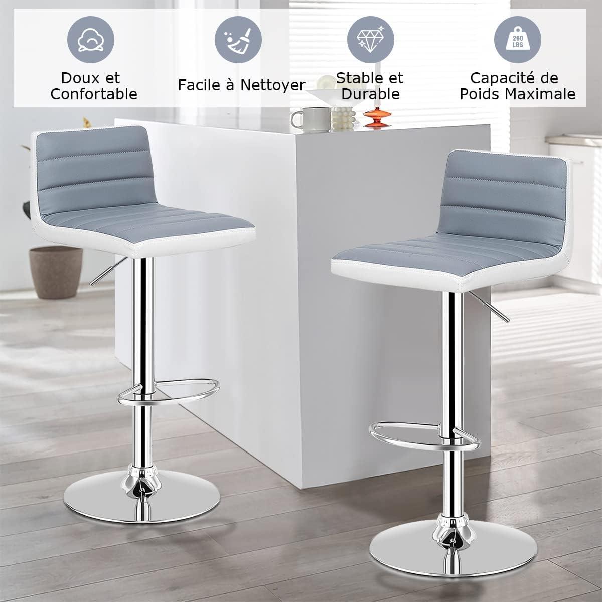 Lot de 2 tabourets de bar réglables en hauteur 77-97 cm – Assise simili cuir PU gris, pied en métal gris, diamètre 40 cm
