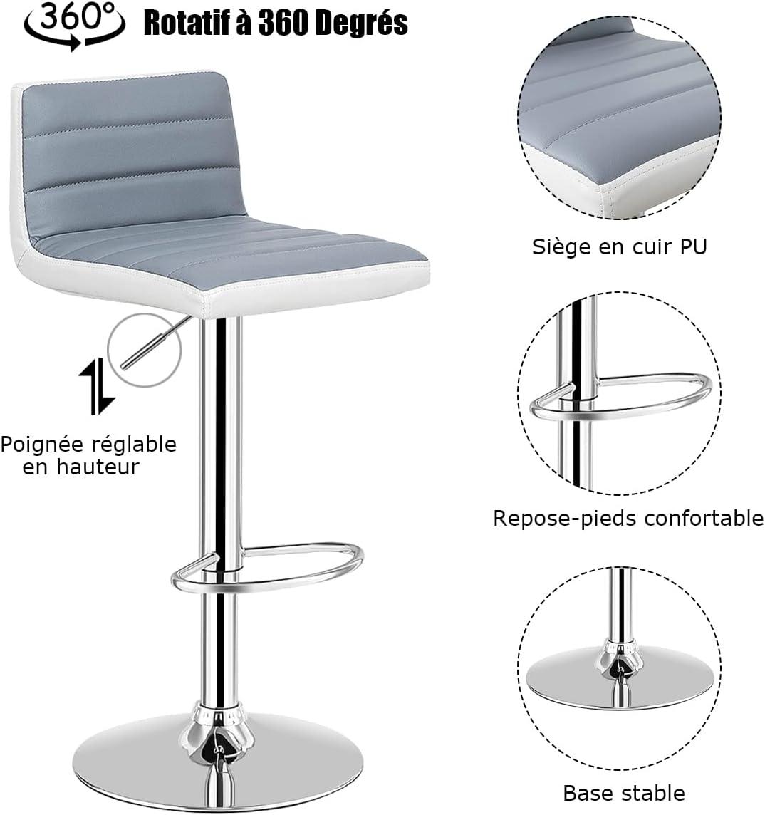 Tabouret de bar réglable en hauteur - simili cuir - gris - GEODE