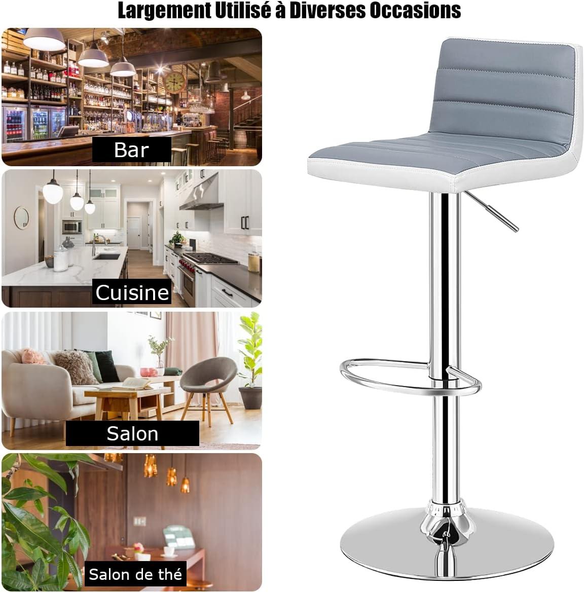 2 Tabourets de bar rotatif sur 360°, en acier + éponge + pu, hauteur réglable 78-98 cm