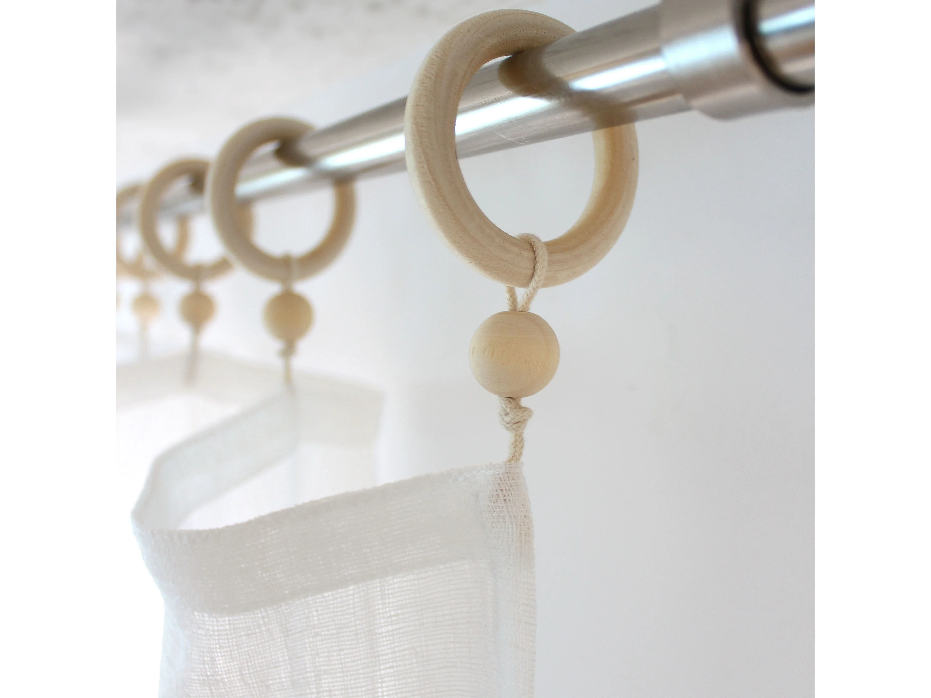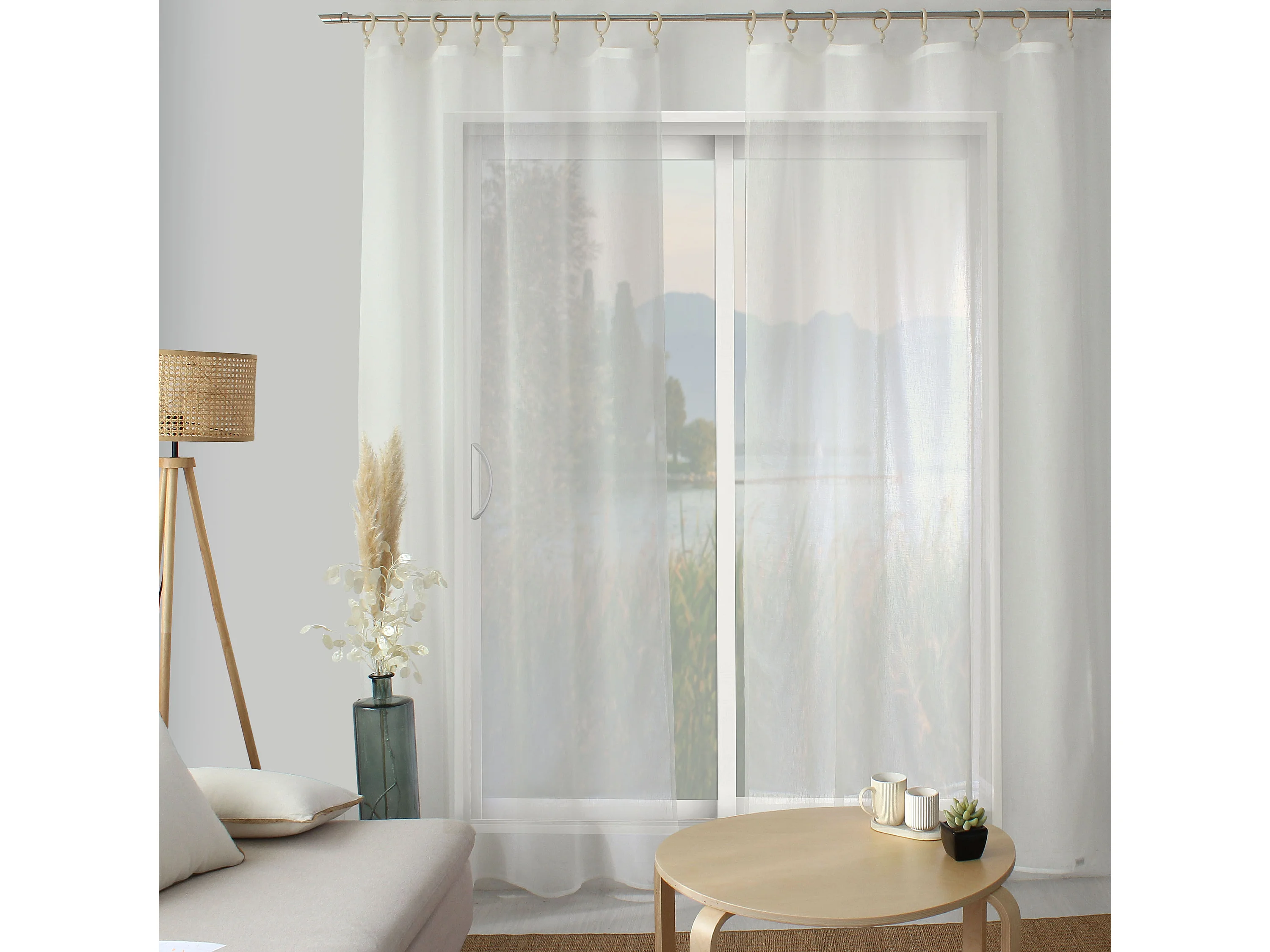 2 voilages à œillets en bois, 140x240cm, écru, aspect lin, Collection Natura, CMADECO