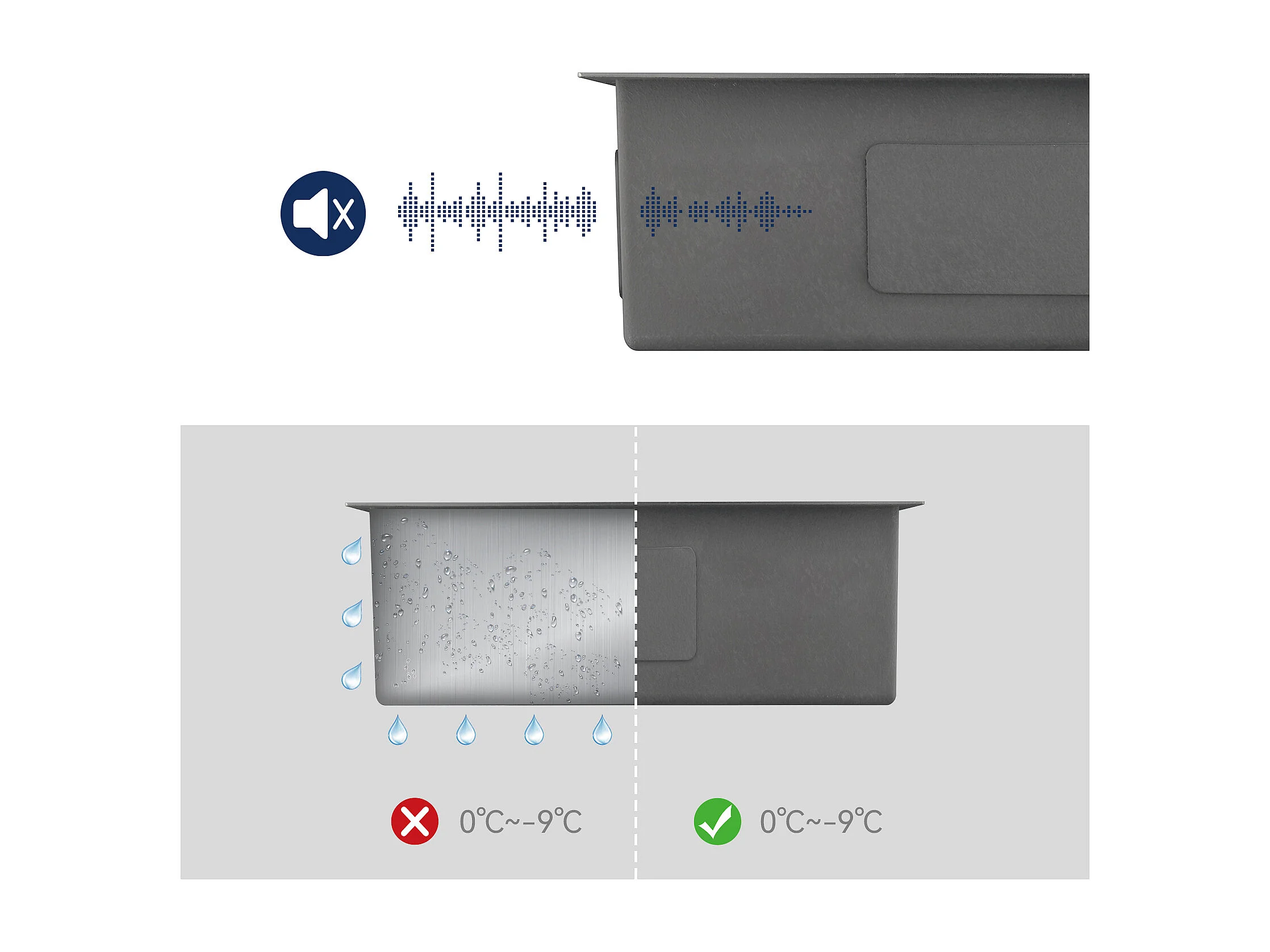 Évier Cuisine 1 Bac 55*44*19CM, à Encastrer/Fleur/ Sous-Plan, Brossé+Robinet Cuisine avec Douchette Extractible 2 Jets,Eau Froide/Chaude,Gris