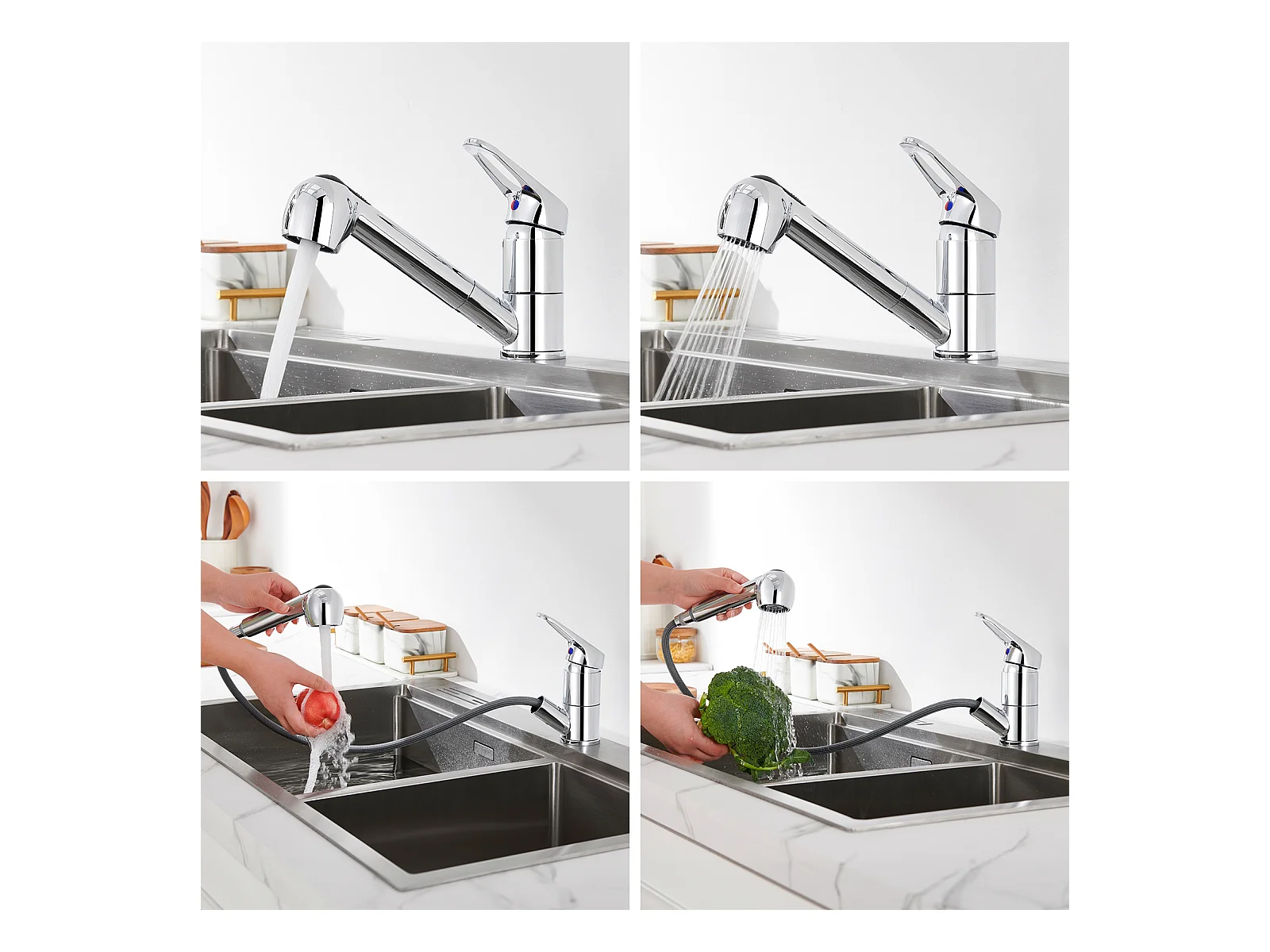 Cecipa max Mitigeur Cuisine avec Douchette Extractible Robinet Cuisine avec 2 Jets aux Choix Robinetterie en Acier Brossé Haute Qualité,EU Modèle