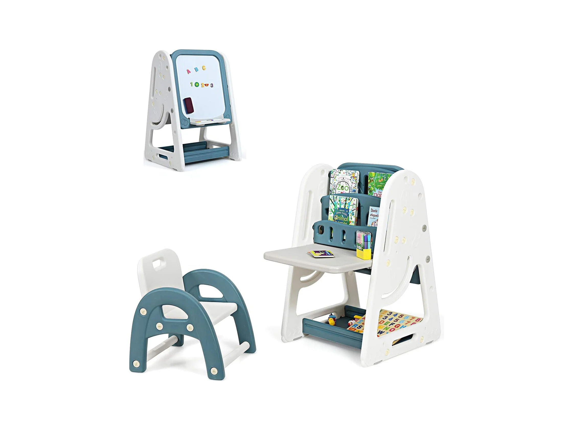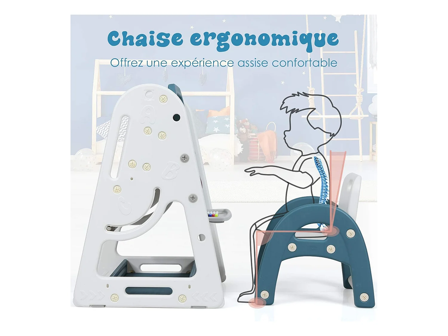 2en1 Tableau Magnétique Enfant Double Face avec Tabouret,Bureau Pliable,Etagère de Livres Accessoires Hauteur Réglable HDPE