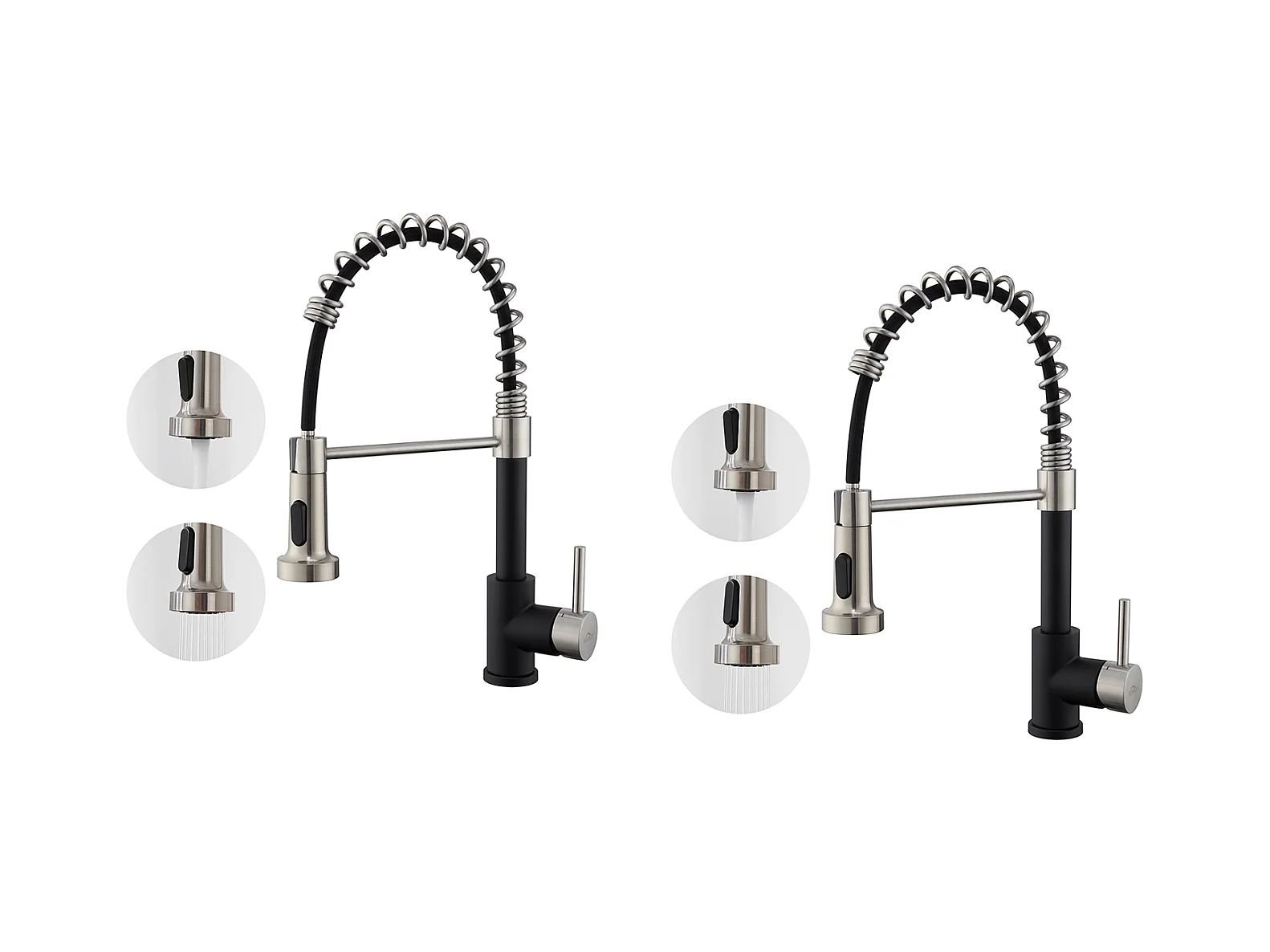 2PCS AURALUM MAX Mitigeur cuisine avec douchette Robinet Cuisine à Ressort Robinetterie cuisine Rotation 360°,2 Jets,Eau Froide/Chaude,Noir