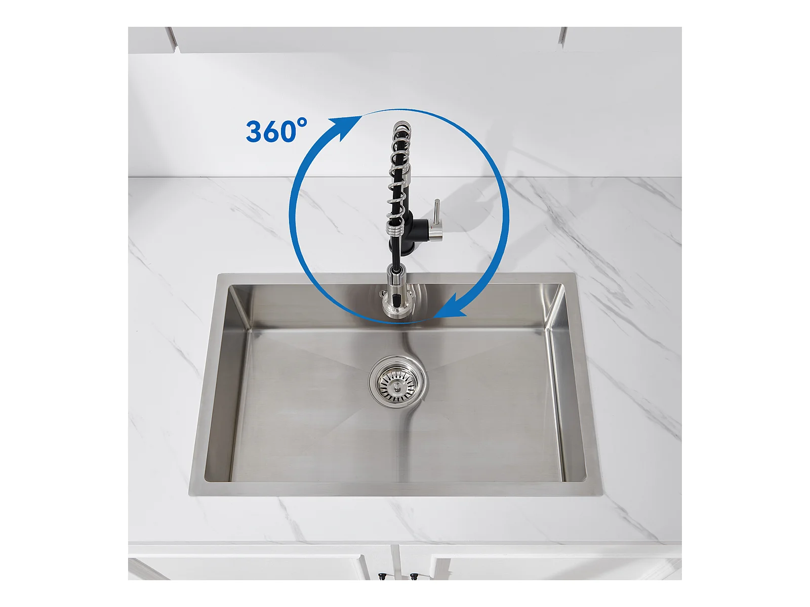 Auralum max Évier Cuisine à Encastrer,1 Bac,60*49*20CM,Évier 1 Cuve en Acier inoxydable 304,Silver+Robinet de Cuisine Flexible Bec Haut Orientable