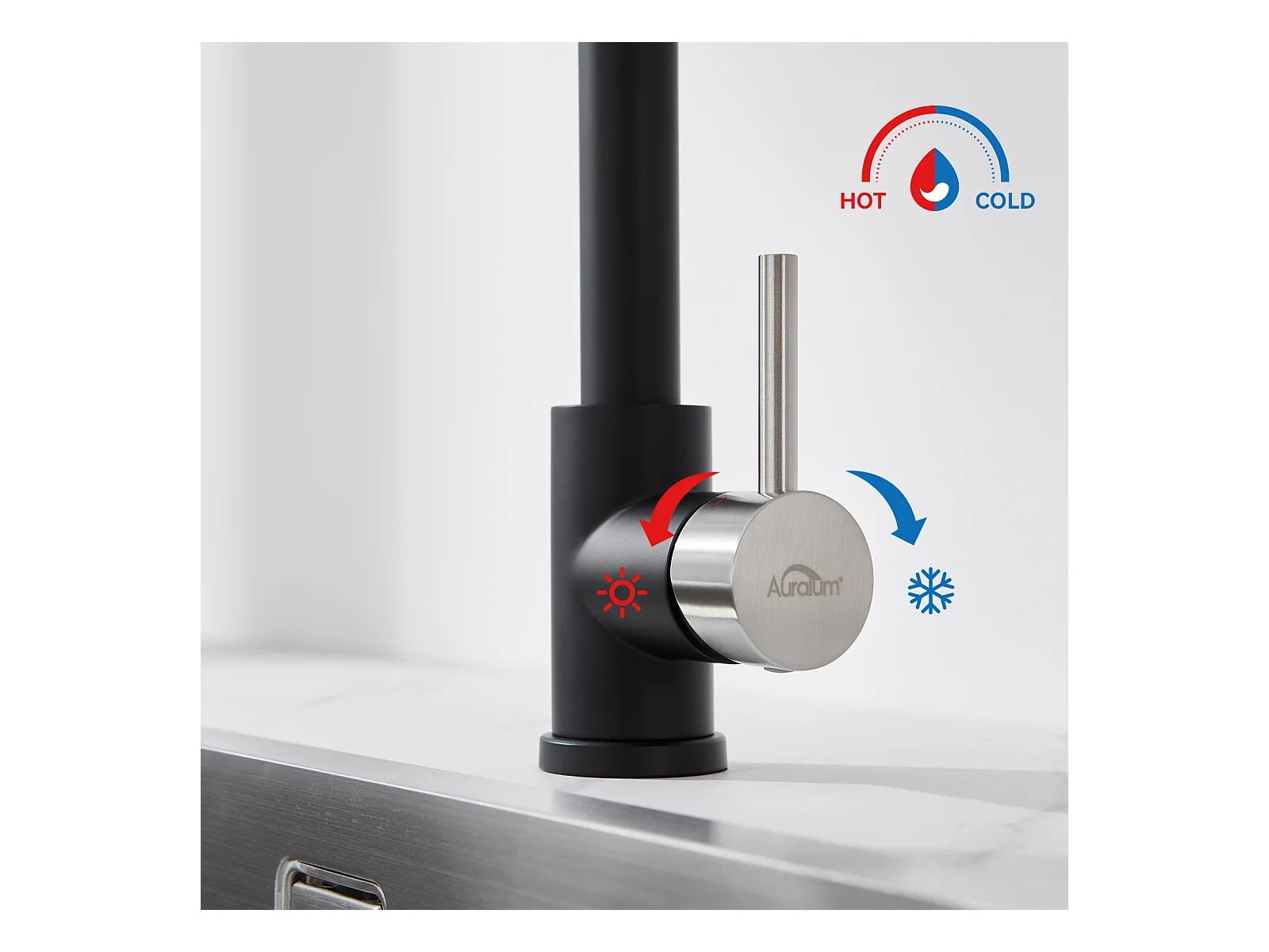 2pcs Auralum max Mitigeur Cuisine Pivotant 360° Elégant Robinet d'évier Bec Haut avec Barboteur Démontable pour Cuisine, à Eau Chaude et Froide, Noir