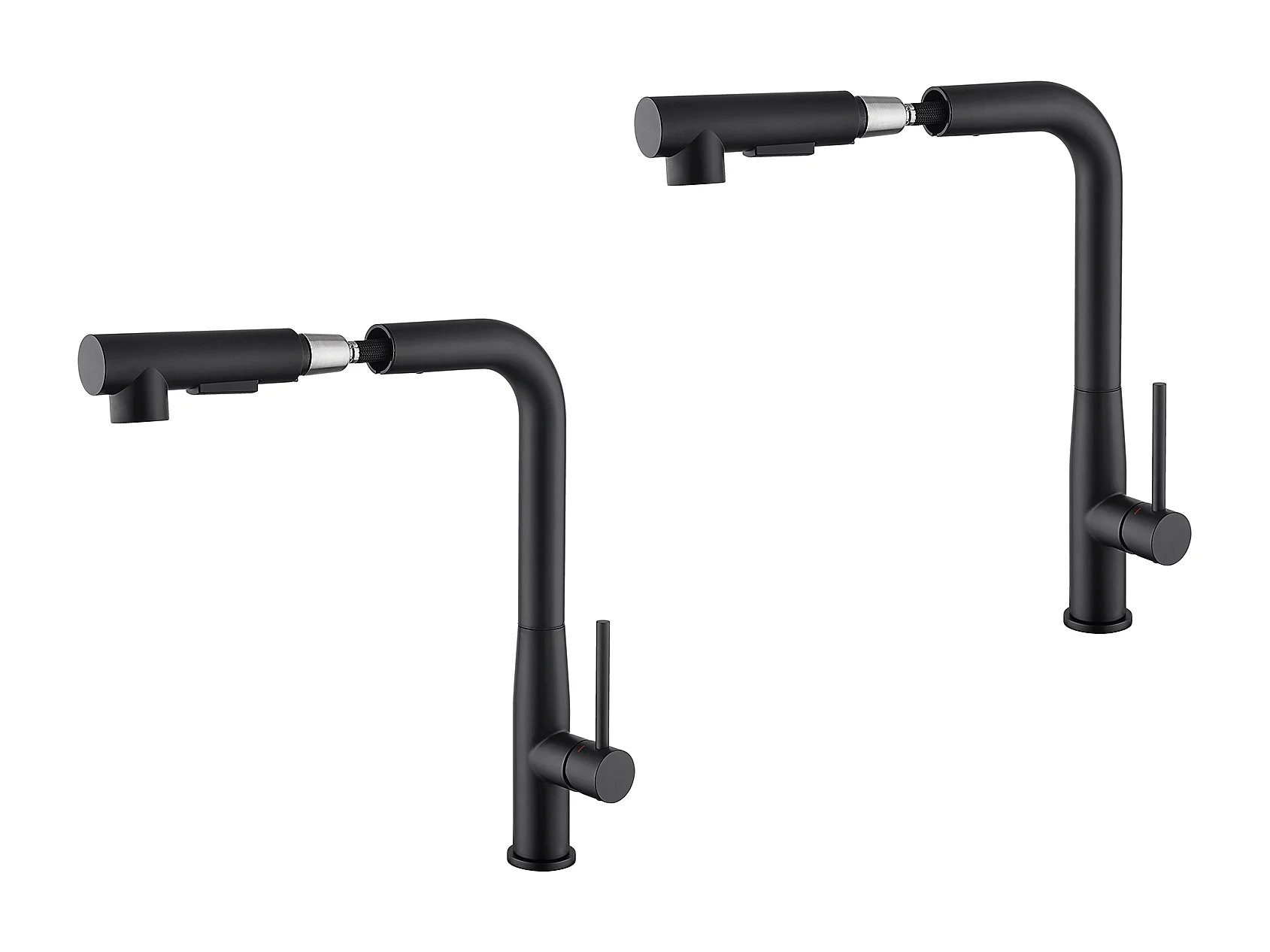 2PCS AURALUM MAX Robinet Cuisine, Mitigeur d'Évier Inox avec Douchette Extractible,2 Modes Jets Eau Froide/Chaude Rotatif à 360° ,Bec en Forme L,Noir