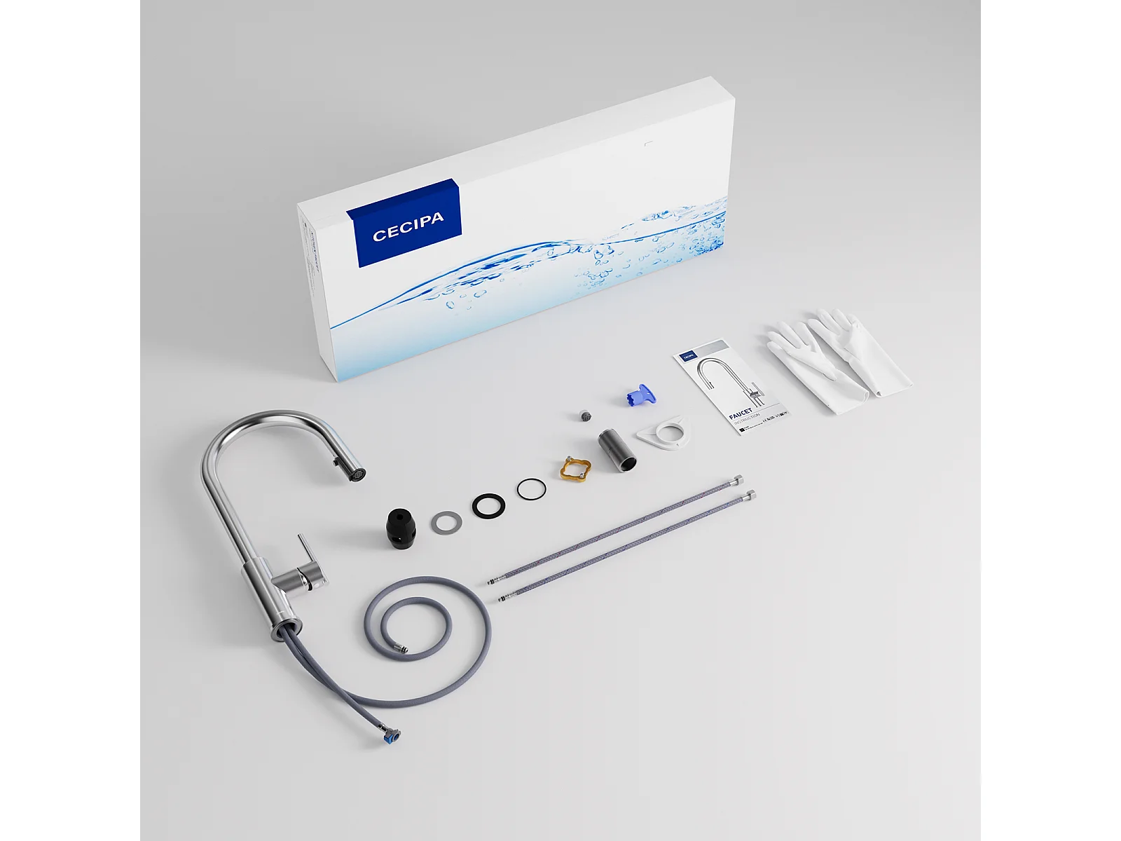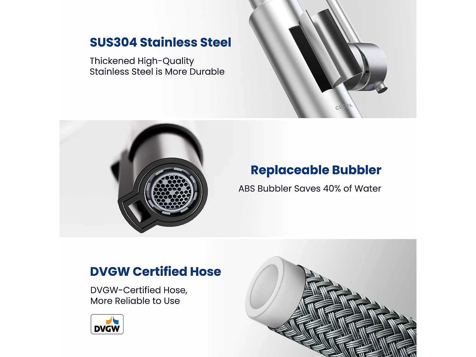 2PCS CECIPA MAX Brossé Mitigeur de Cuisine avec Douchette Extractible - Robinet de Evier Avec 2 modes de sortie d'eau - Pivotant à 360°
