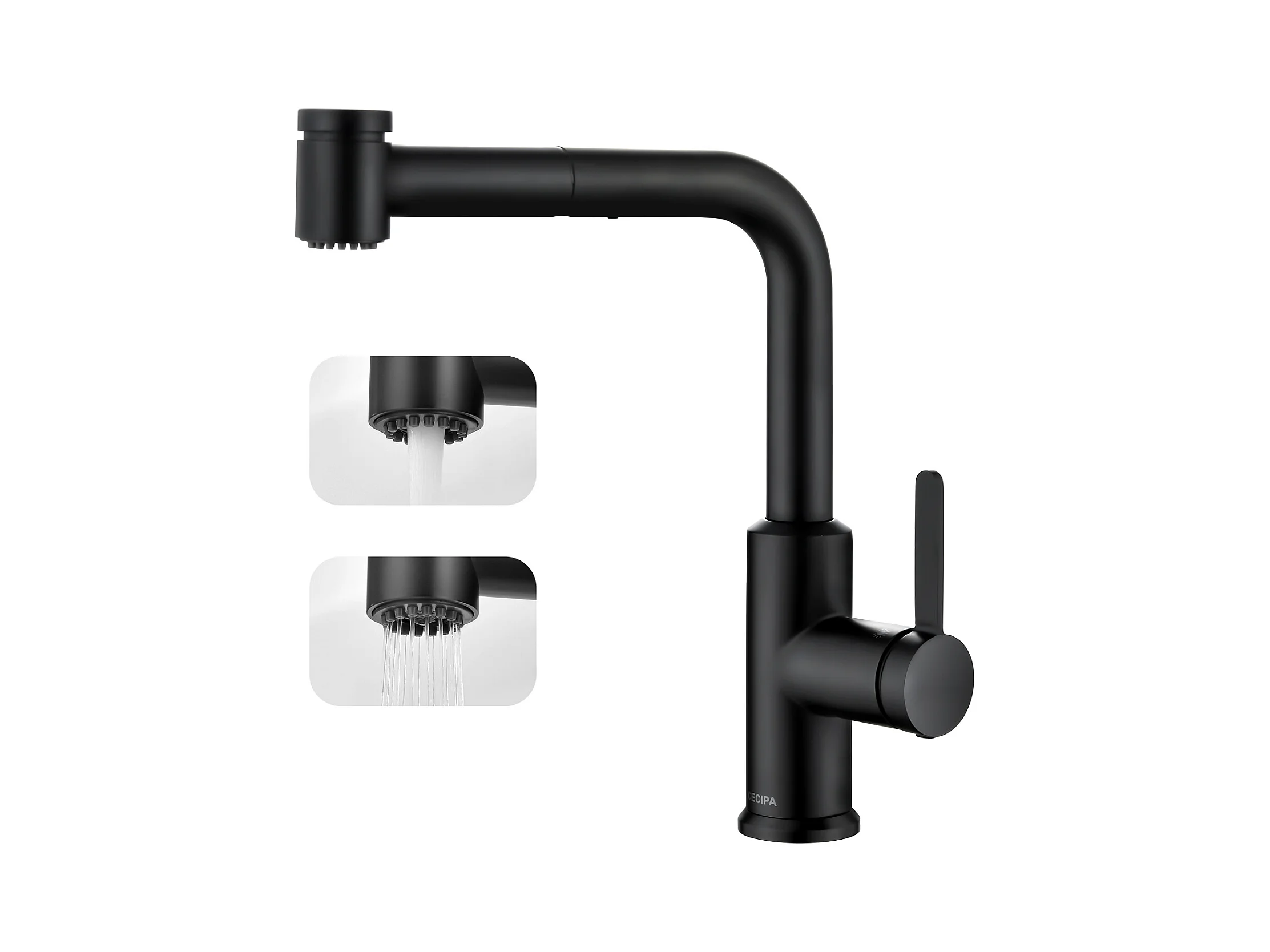 Cecipa max Mitigeur de Cuisine avec Douchette Extractible, Robinet d'évier Noir, Robinet d'eau Chaude et Froide, 2 Modes de Sortie D'eau,EU Modèle
