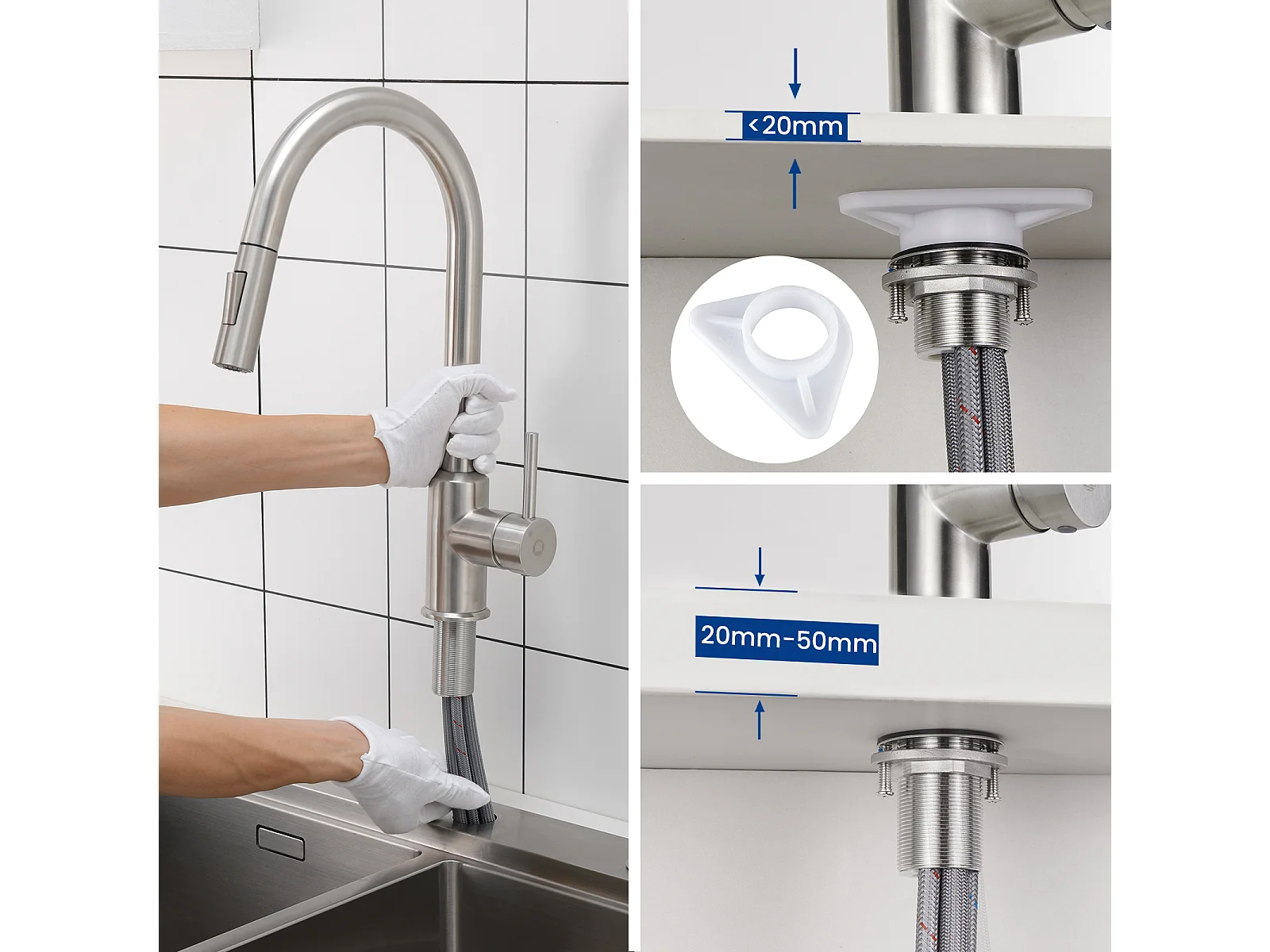 2PCS Cecipa max Mitigeur Cuisine avec Douchette Extractible Robinet Cuisine avec 2 Mode Jets Robinetterie en Acier Brossé Haute Qualité,EU Modèle