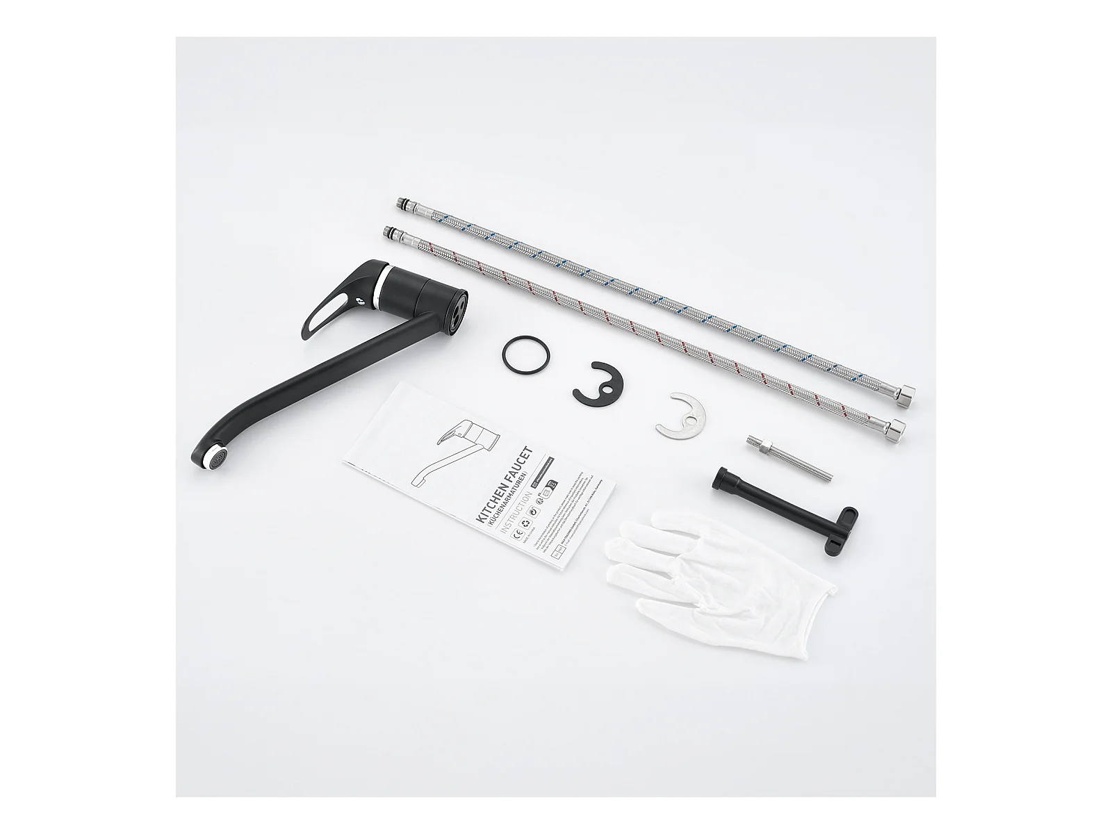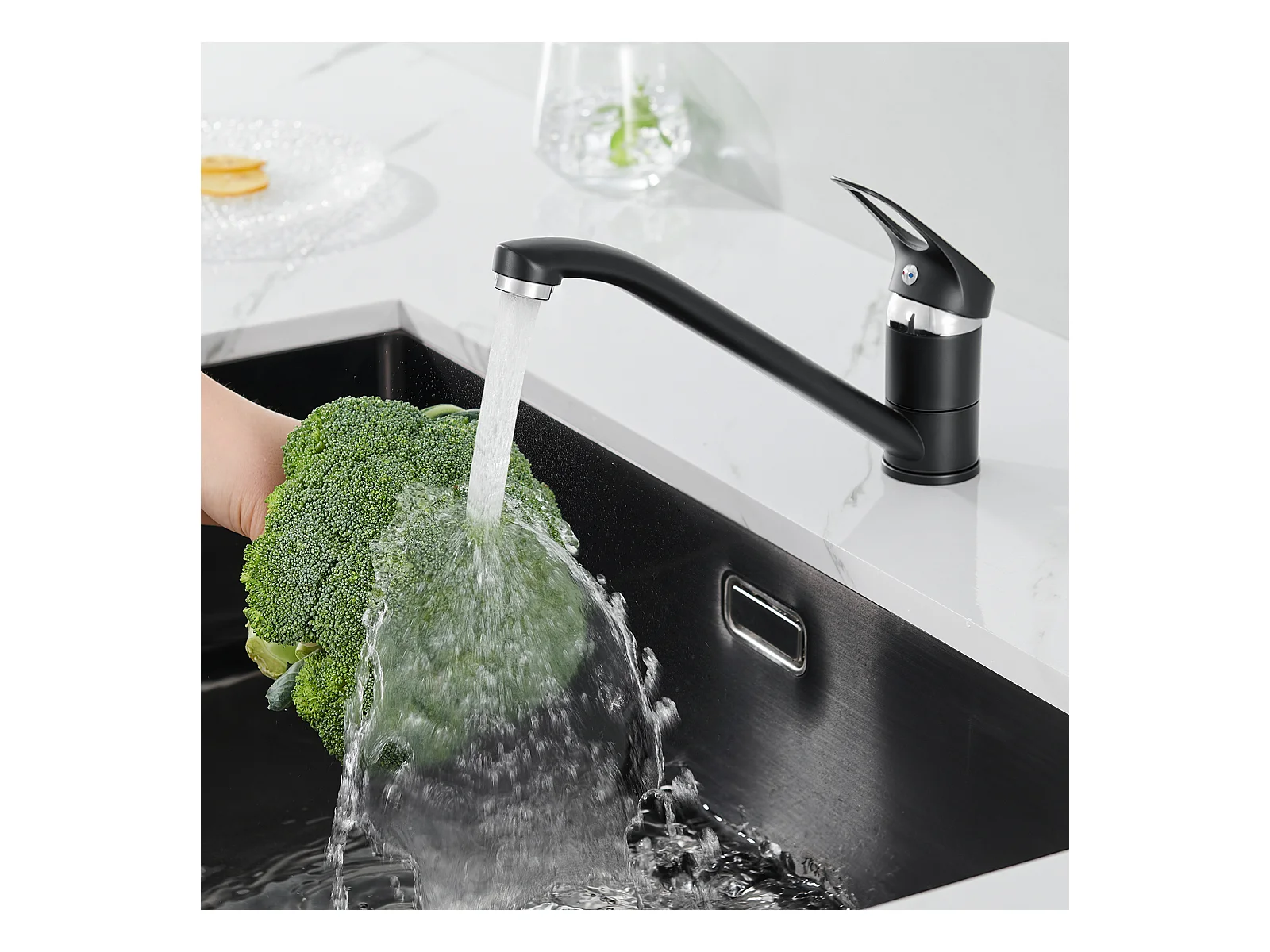 Mitigeur de Cuisine ,Noir Robinet Evier à Poignée Unique Rotatif 360° Mitigeur Cuisine à Eau Froide/Chaude en Laiton avec Aérateur Démontable