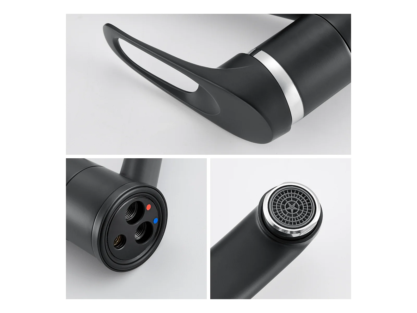 2PCS Mitigeur d'Evier,Robinet Cuisine Orientable à 360°, Les Conduites d'eau Chaude et Froide et Les Accessoires Sont Complets,en Laiton,Noir