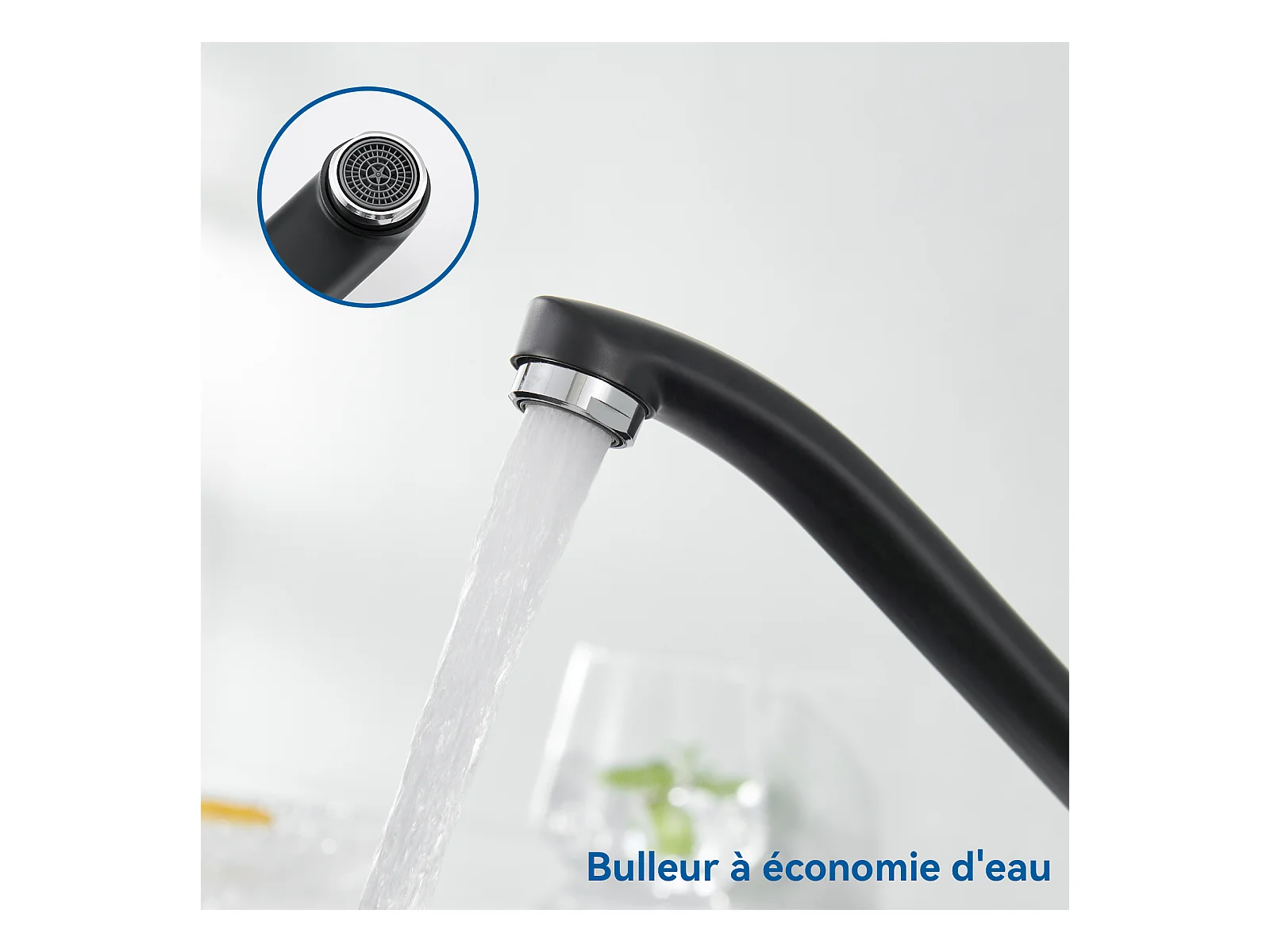2pcs Robinet de Cuisine Noir avec Douchette Extractible Mitigeur Cuisine Rotatif à 360 ° Robinet d'Évier 2 Fonctions avec Barboteur Démotable