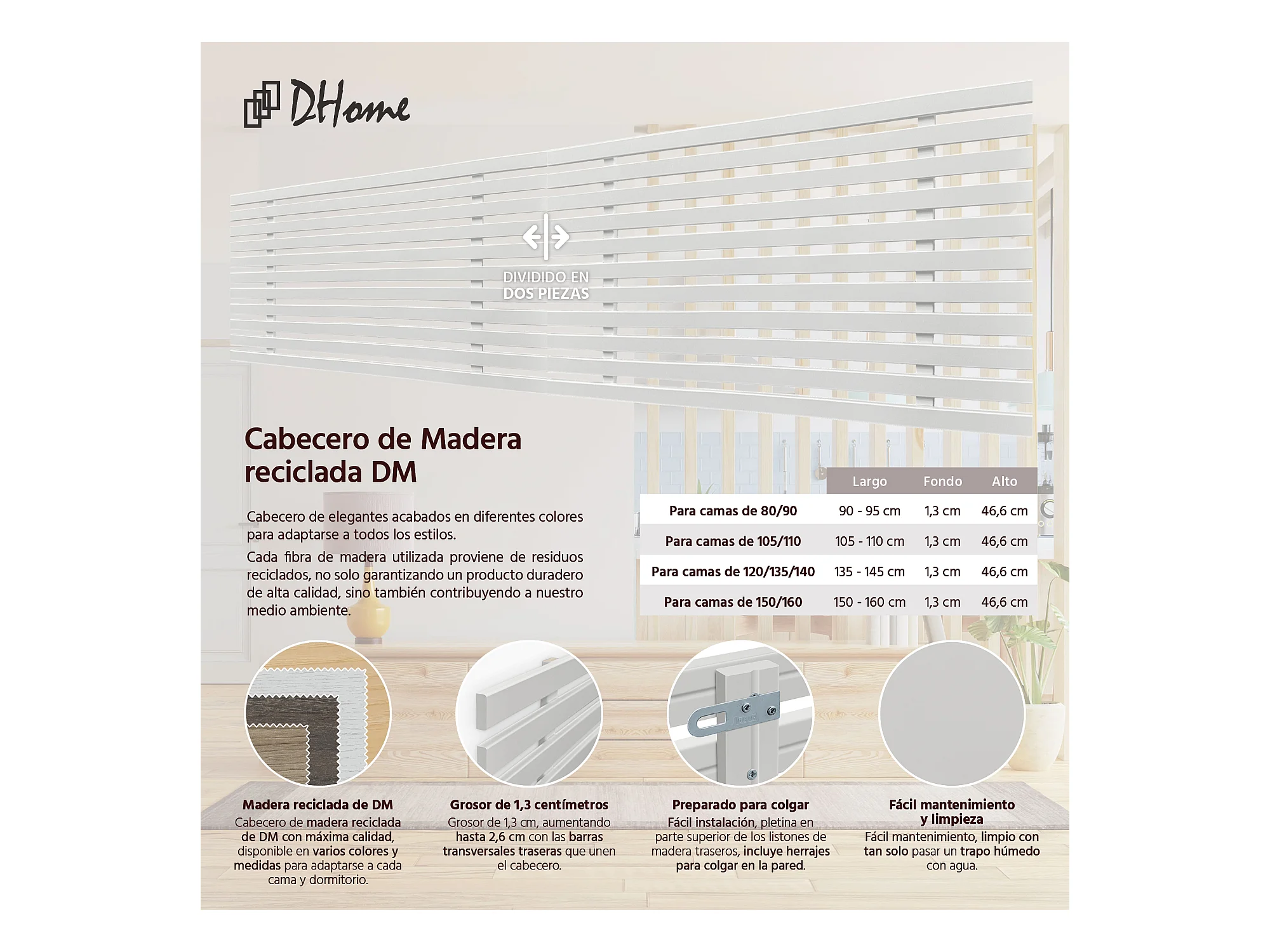 3. DHOME Tête de Lit DM Bois Recyclé Double Style Palette Japonaise Divisée en 2 Pièces 210x46cm Lits 220 - Blanc Massif