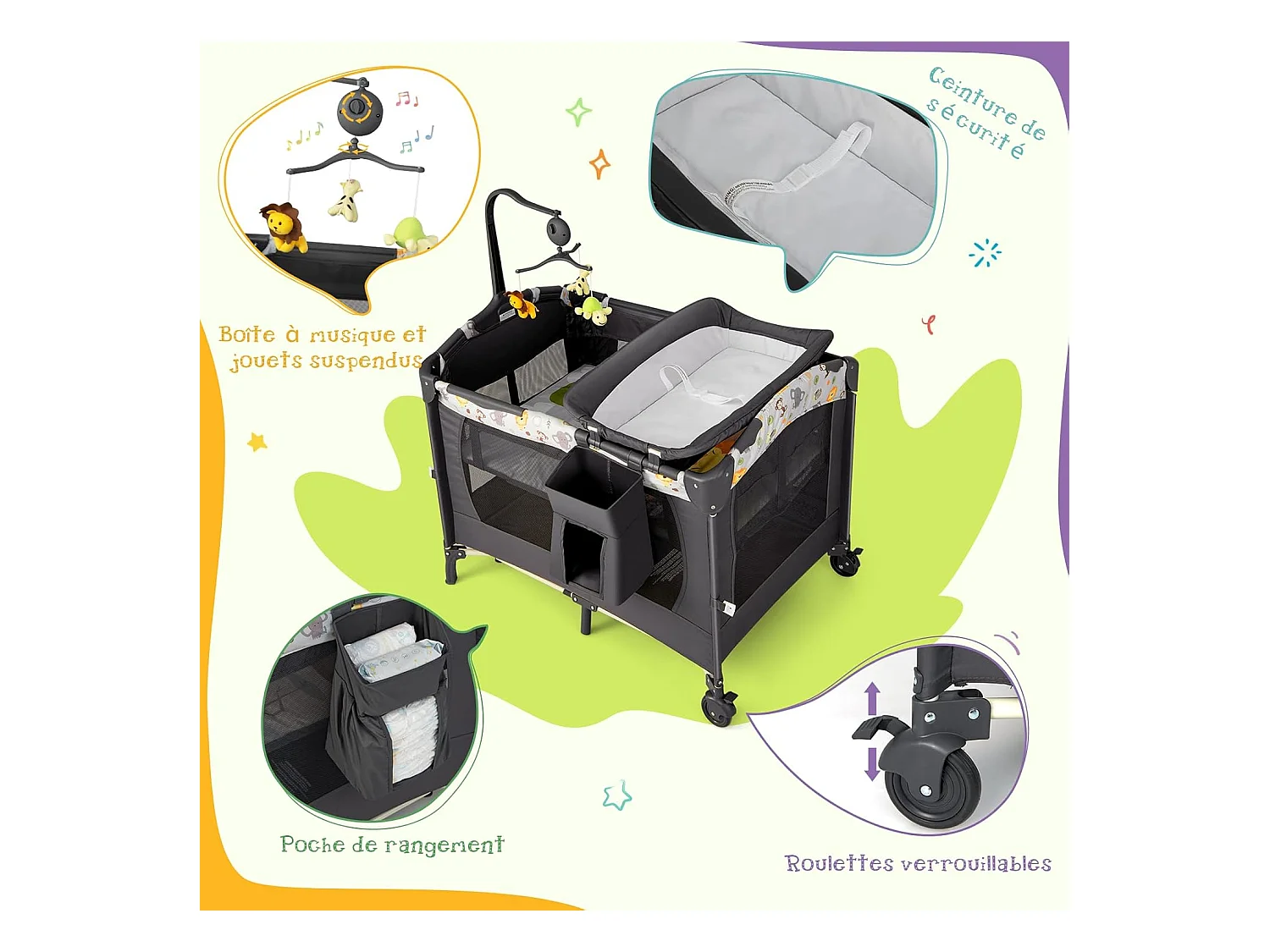 Lit parapluie bébé pliant 5 en 1 ,4 hauteurs d'accoudoir réglables