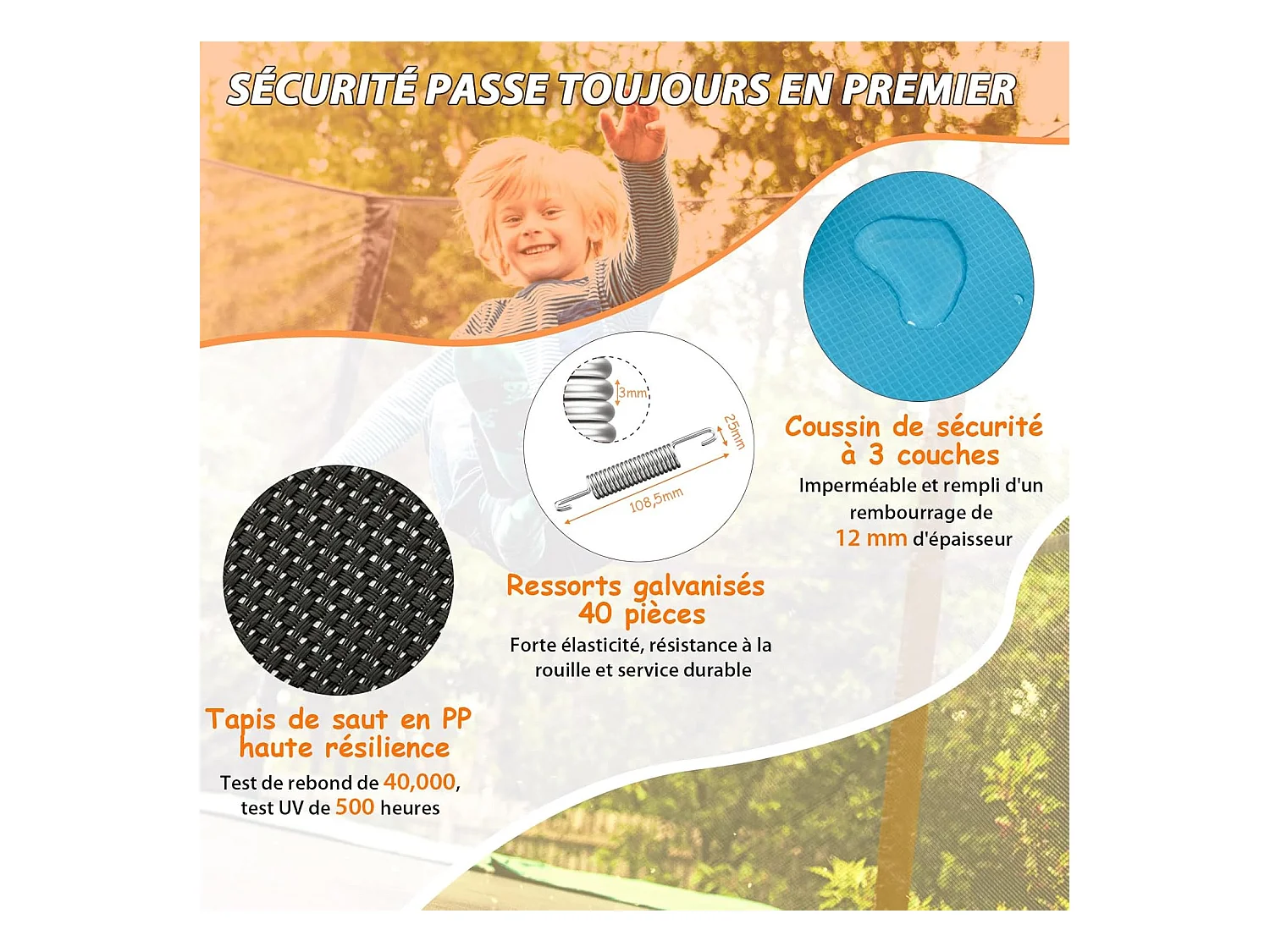 Trampoline de Jardin Enfants et Adultes Jeux d'Extérieur 244 cm Noir et Bleu Avec Filet de sécurité Couverture de protection