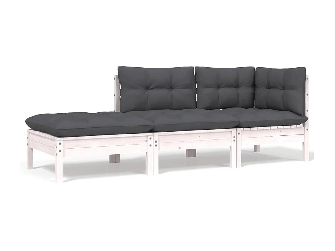 3 pcs Canapés de jardin avec coussins Blanc Bois de pin massif PWRS82097