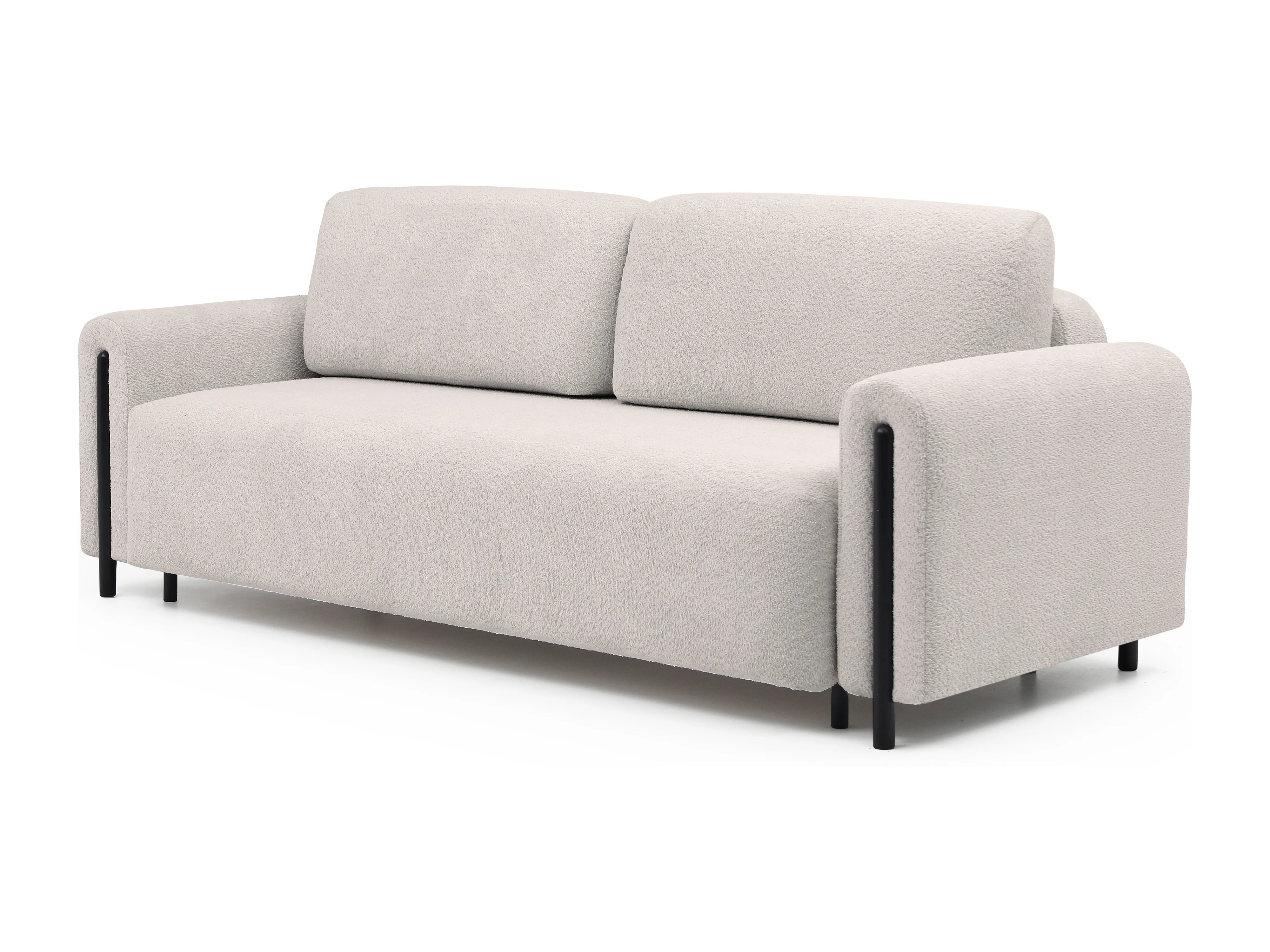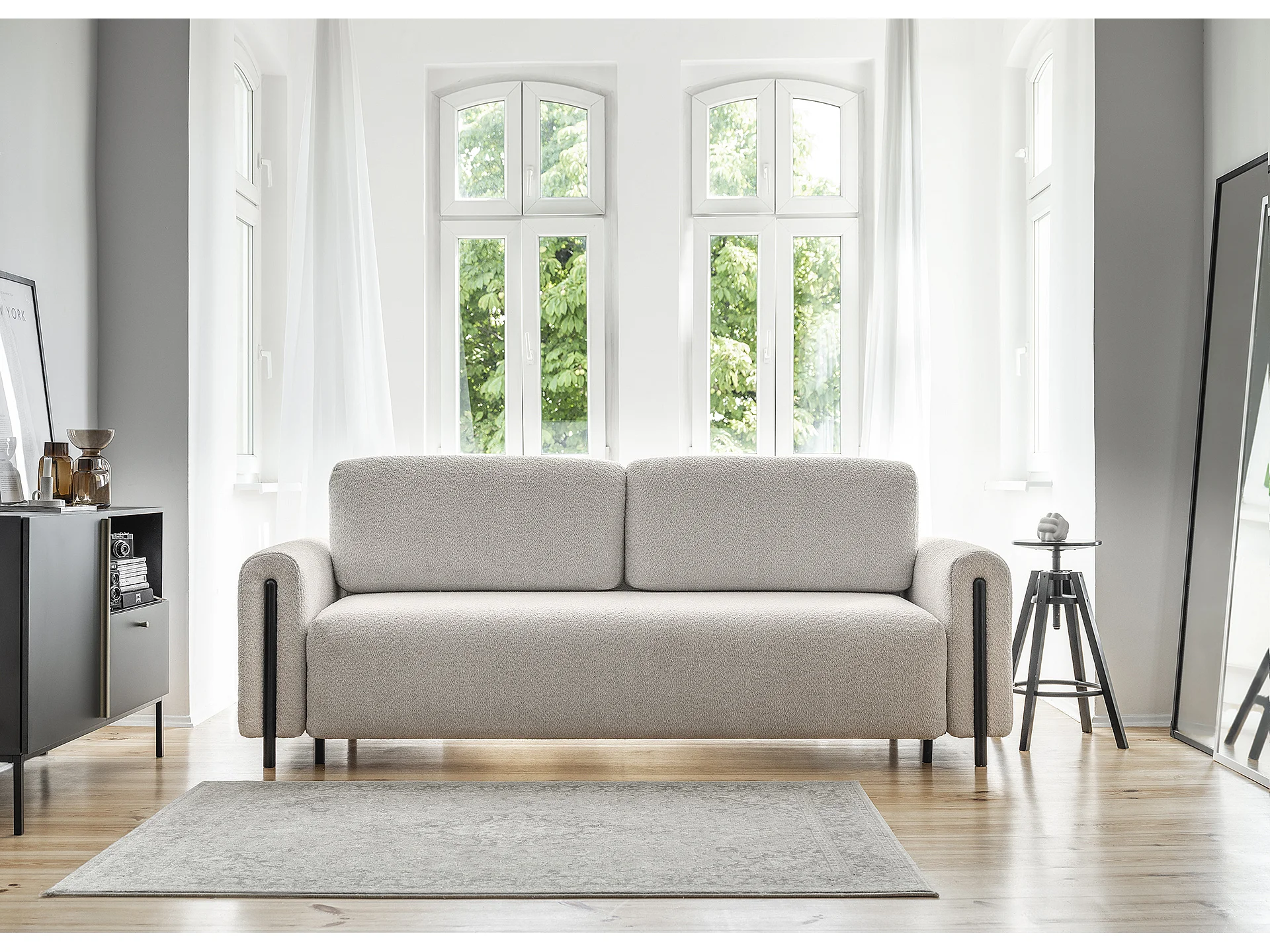 Canapé convertible 4 places en tissu bouclette DOVA - Pieds bois massif noir-Beige