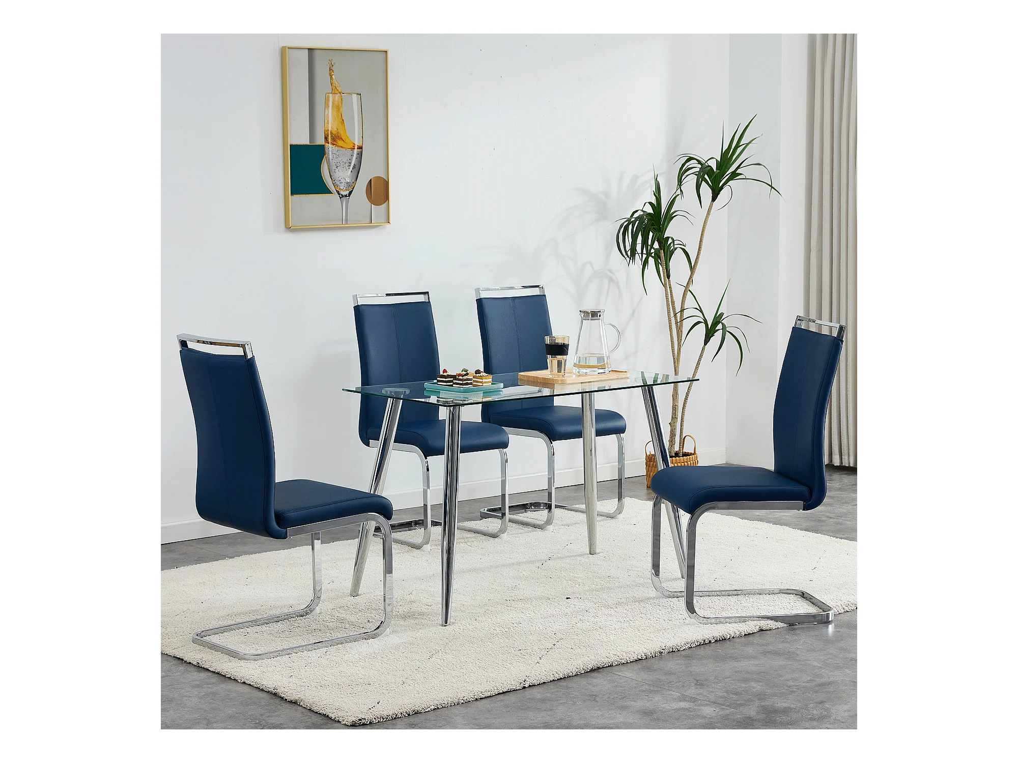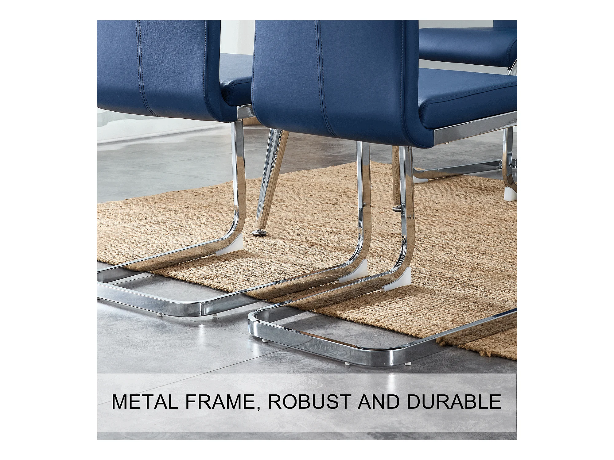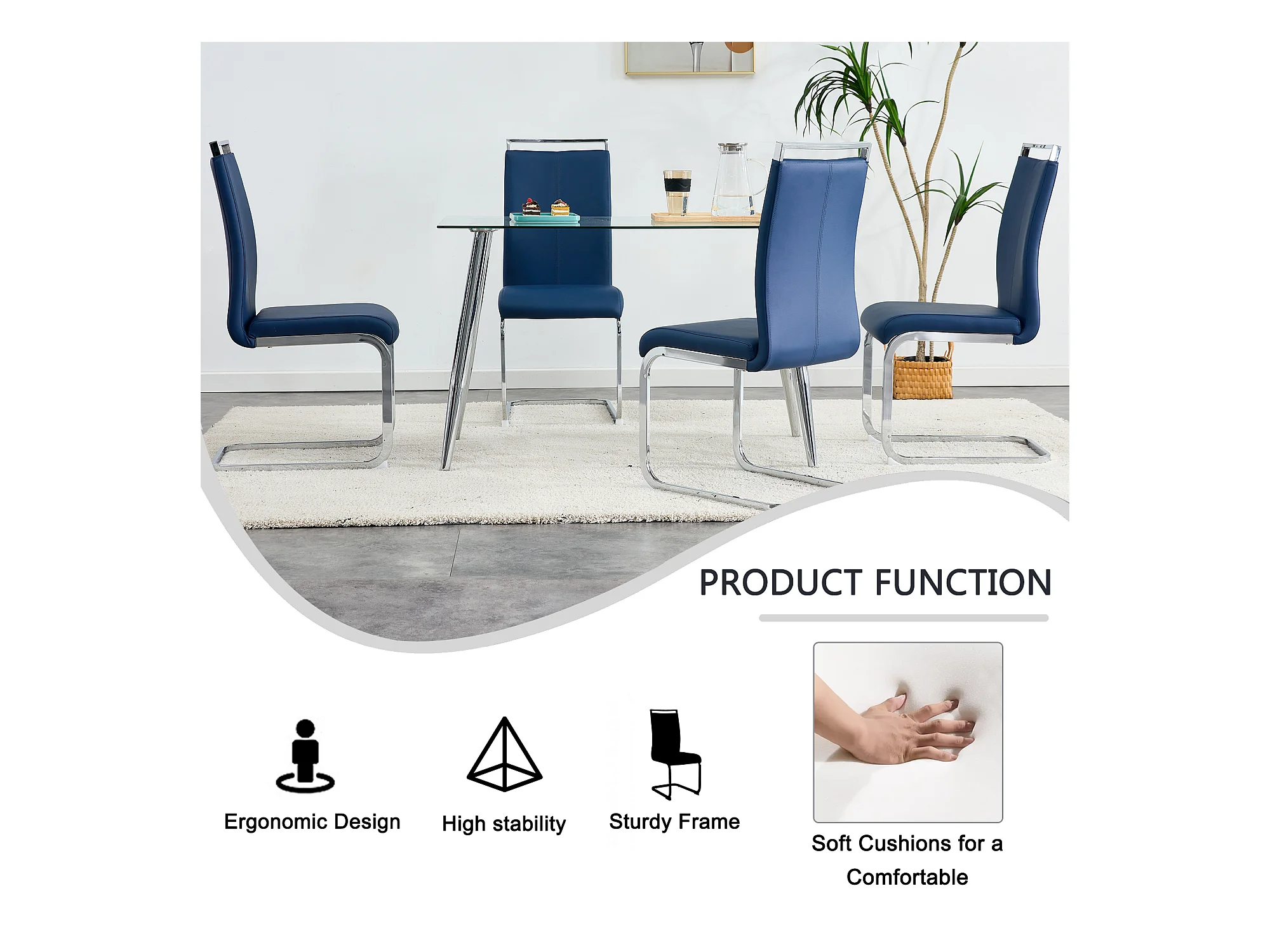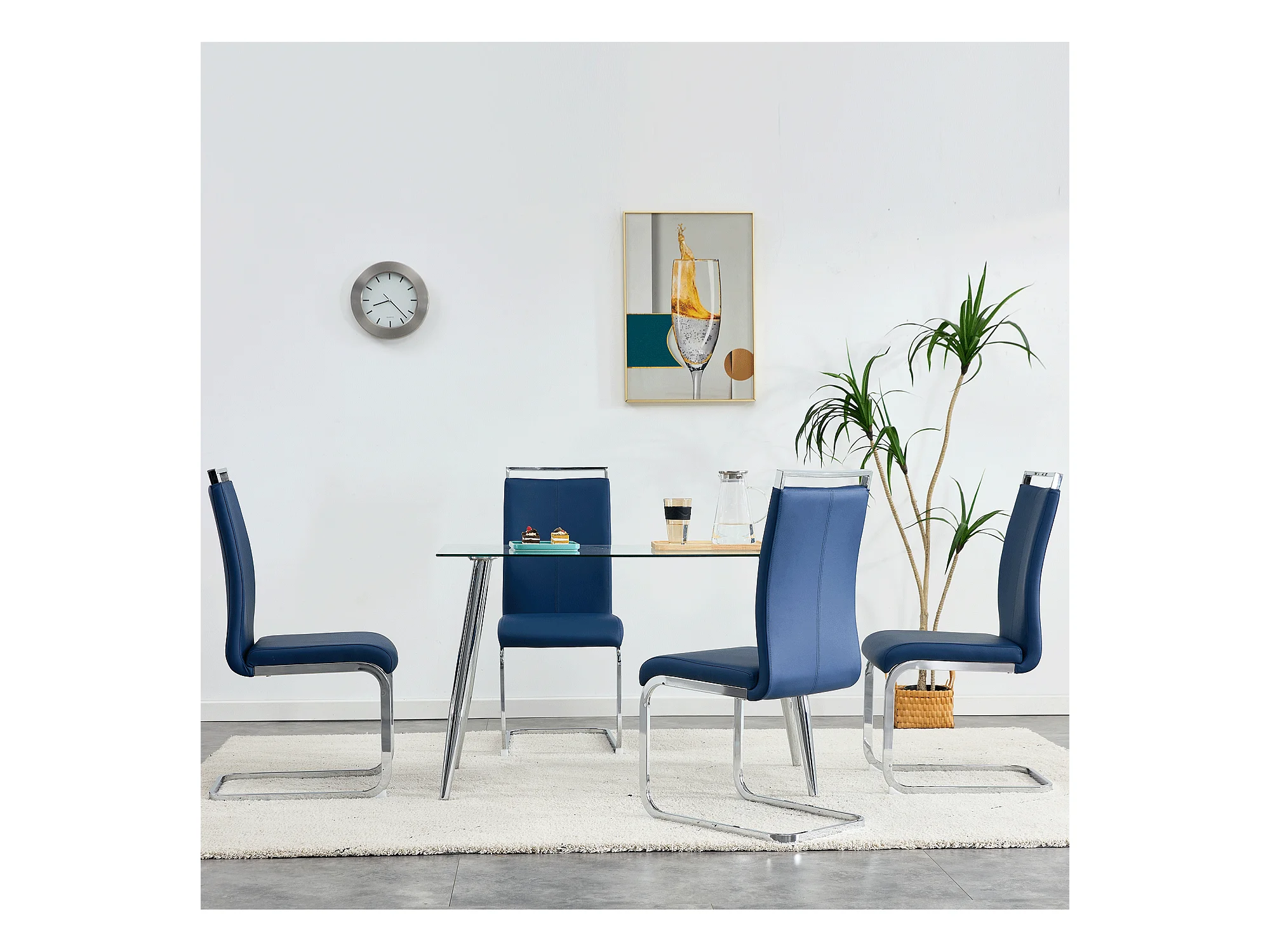 4 chaises de salle à manger modernes, cadre en métal chromé, bleu