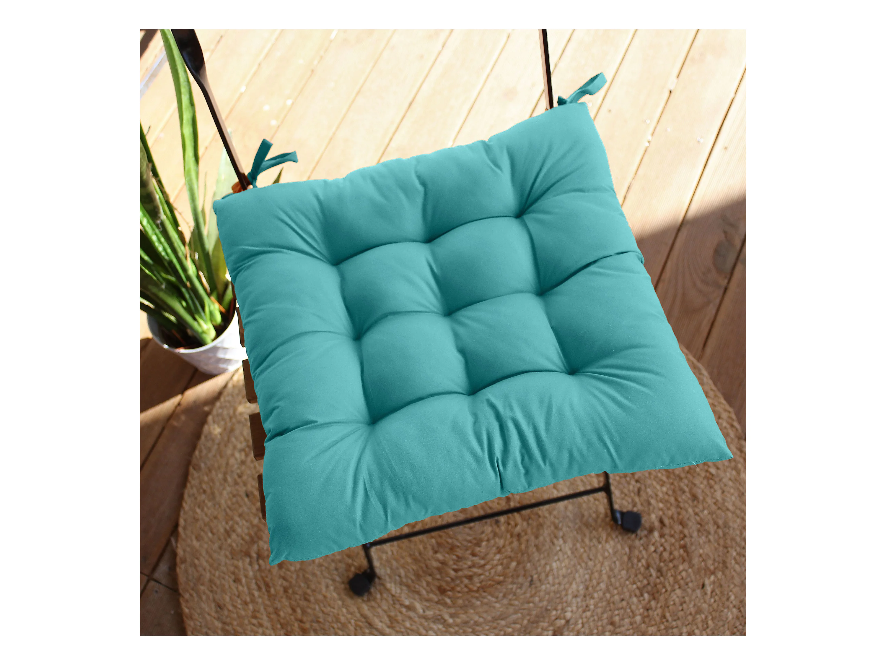 4 galettes de chaise, turquoise, carré 36x36cm, tissu déperlant et anti-UV, collection Costa