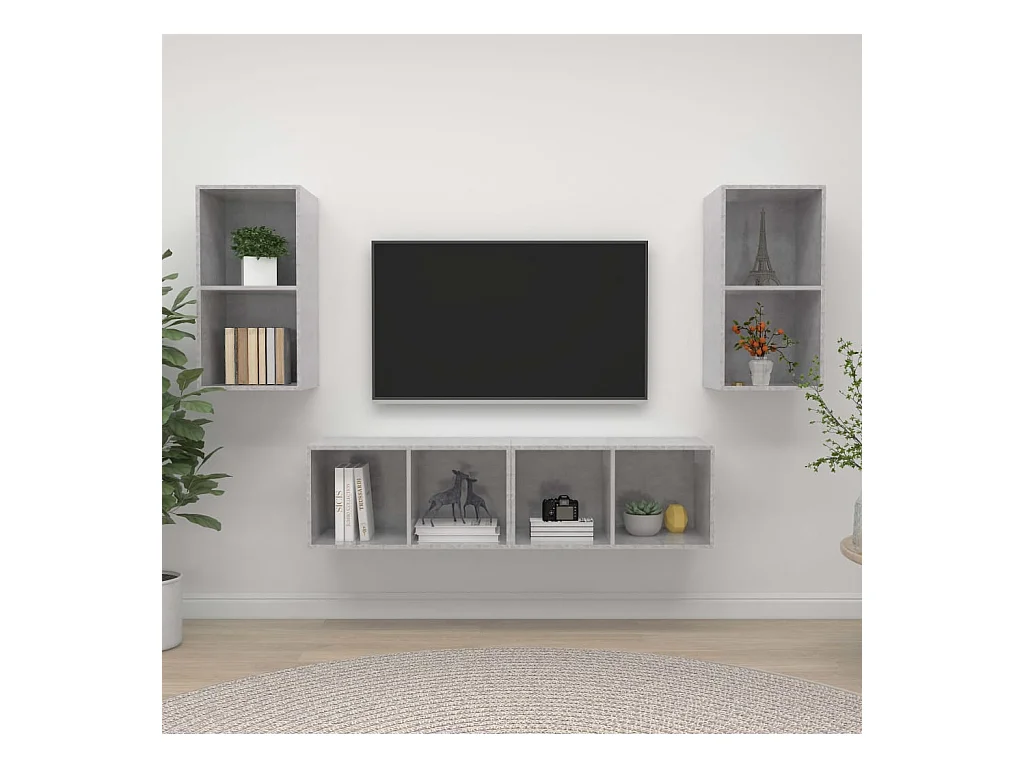 4 pcs Meubles TV suspendus Gris béton Aggloméré LWW64177