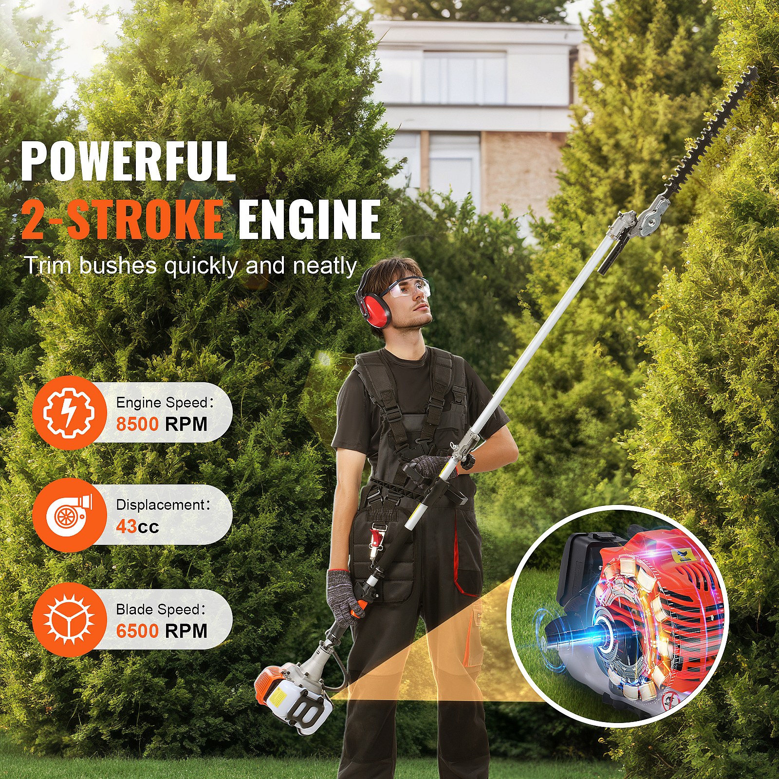 Hecht jardin SucceBuy 43CC 6-En-1 Outils de Coupe à Essence, Taille-Haie et Coupe-Herbe
