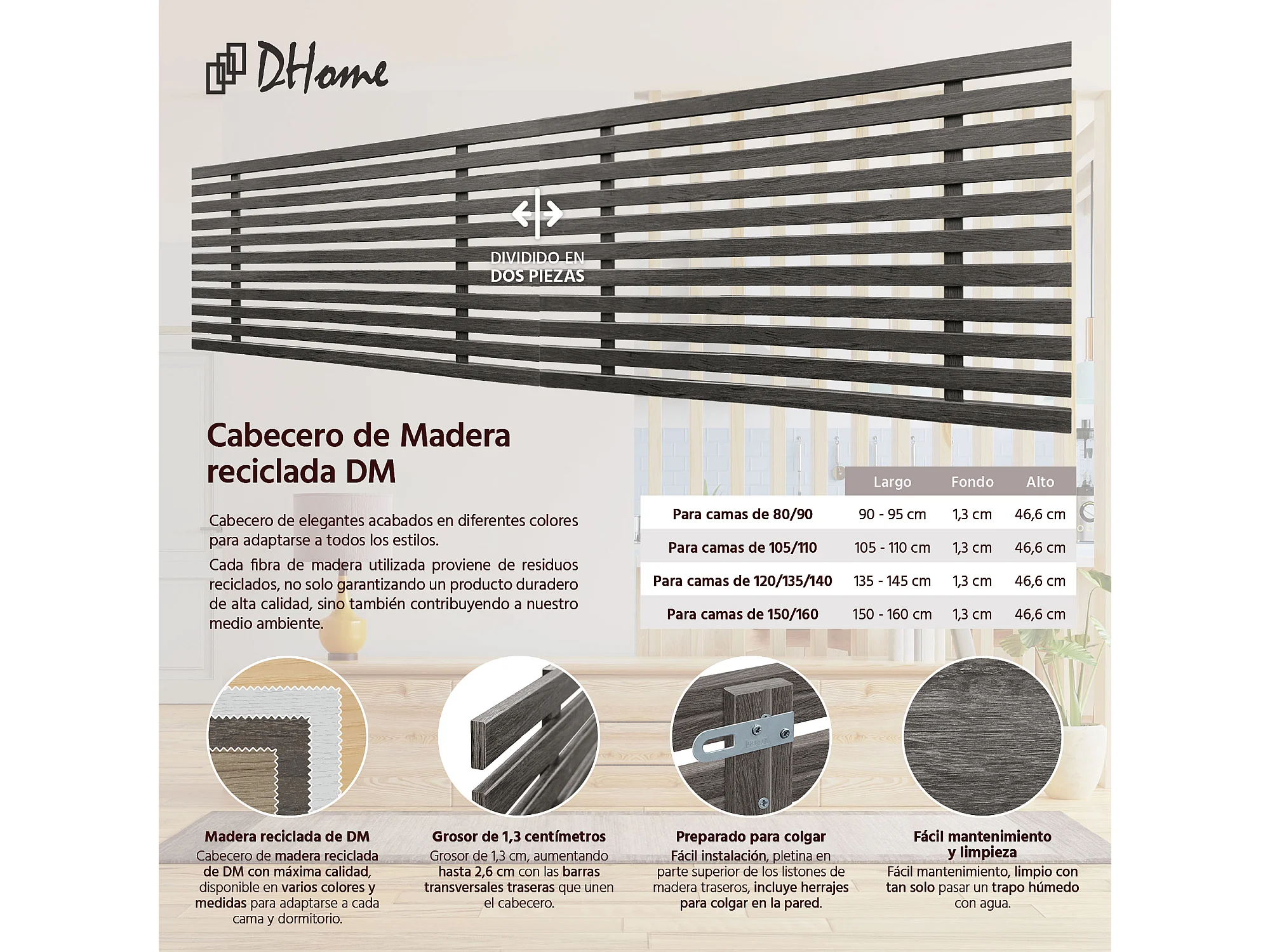 5. DHOME Tête de Lit DM Bois Recyclé Double Style Palette Japonaise Divisée en 2 Pièces 160x46cm Lits 160 - Bois Frêne