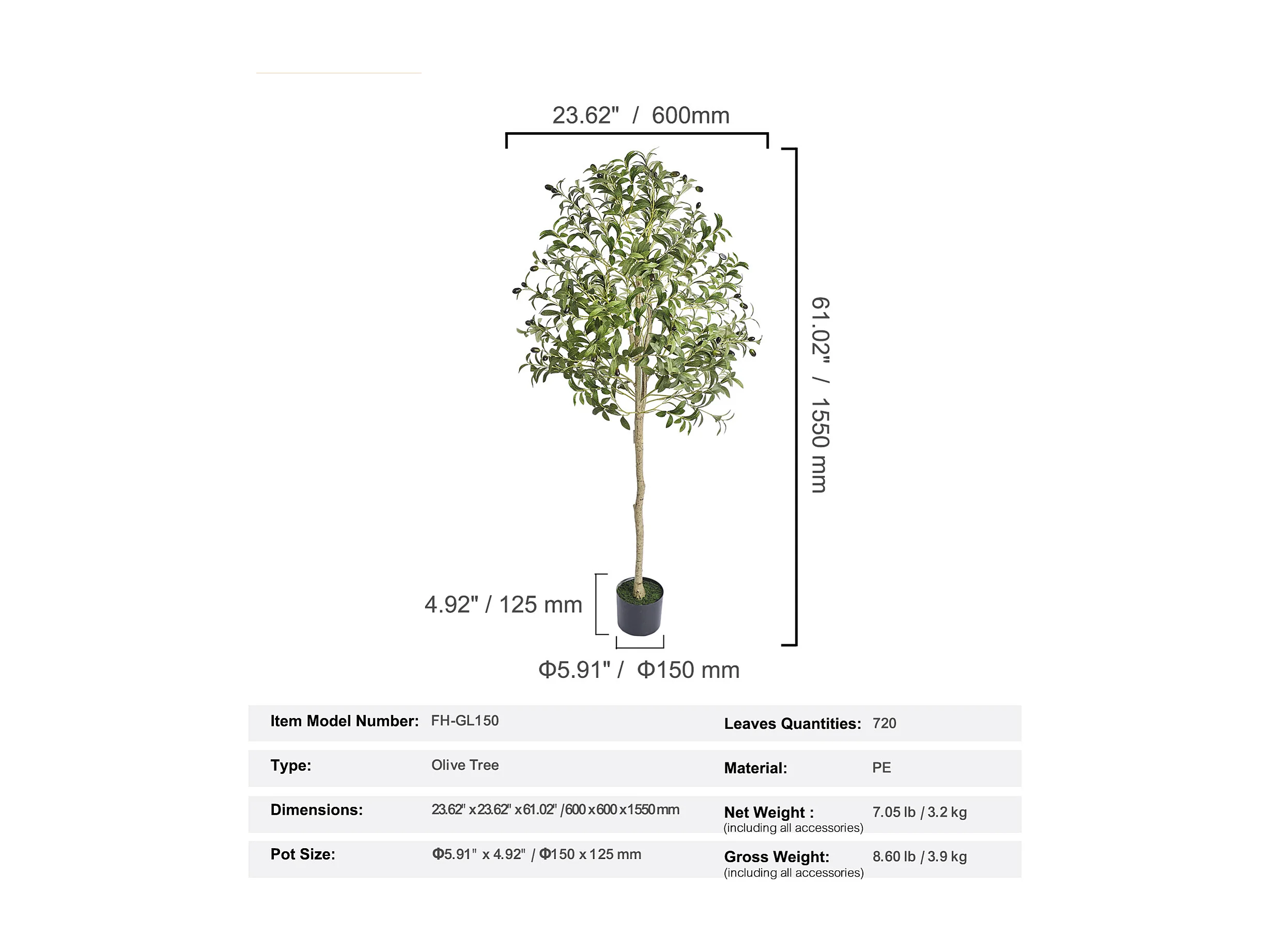 Arbre Artificiel SucceBuy 155 cm, Plante Artificielle PE, pour Maison Bureau Centres Commerciaux Intérieur Extérieur
