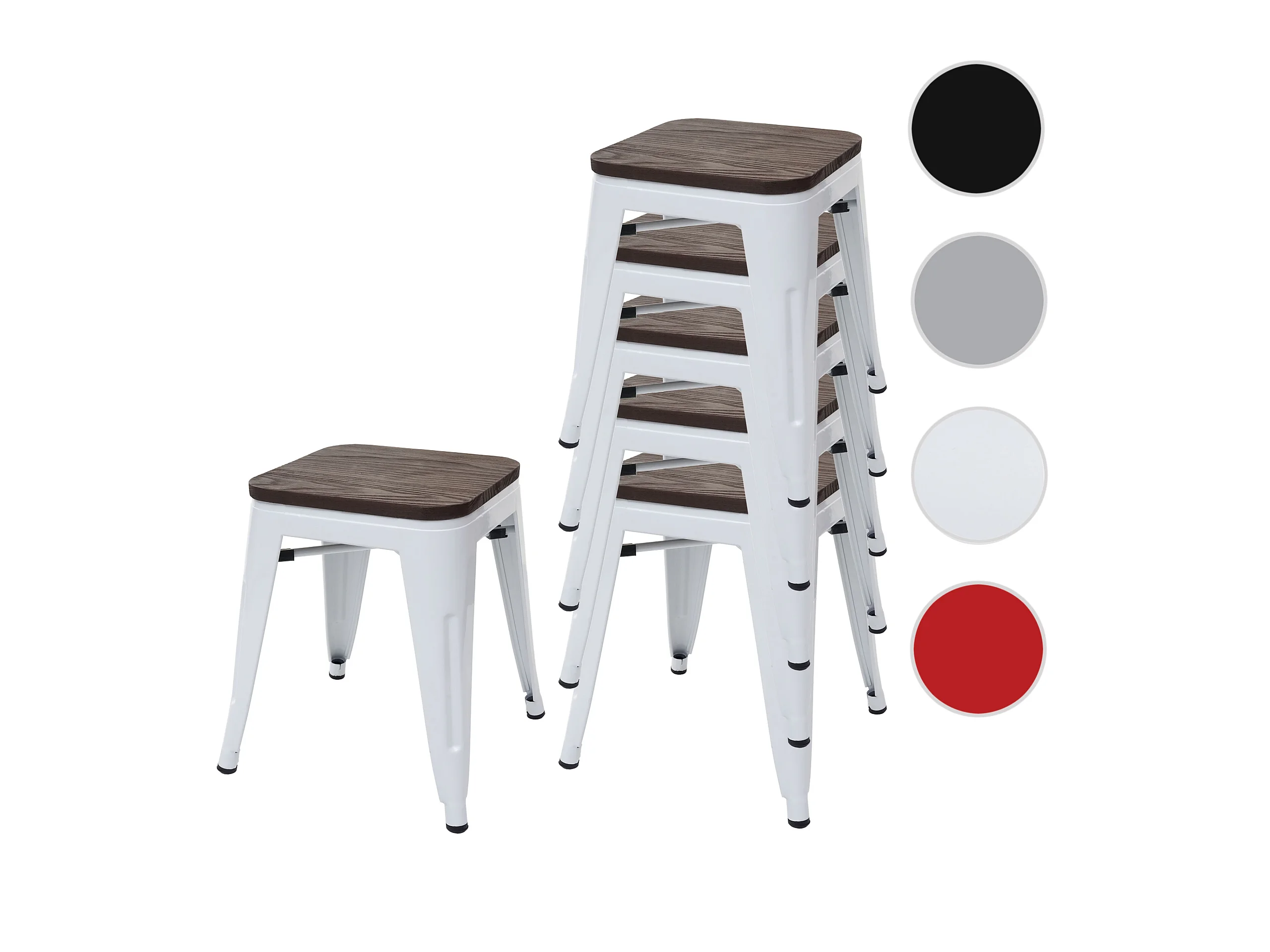 4x tabouret MCW-A73, assise en bois incluse, blanc