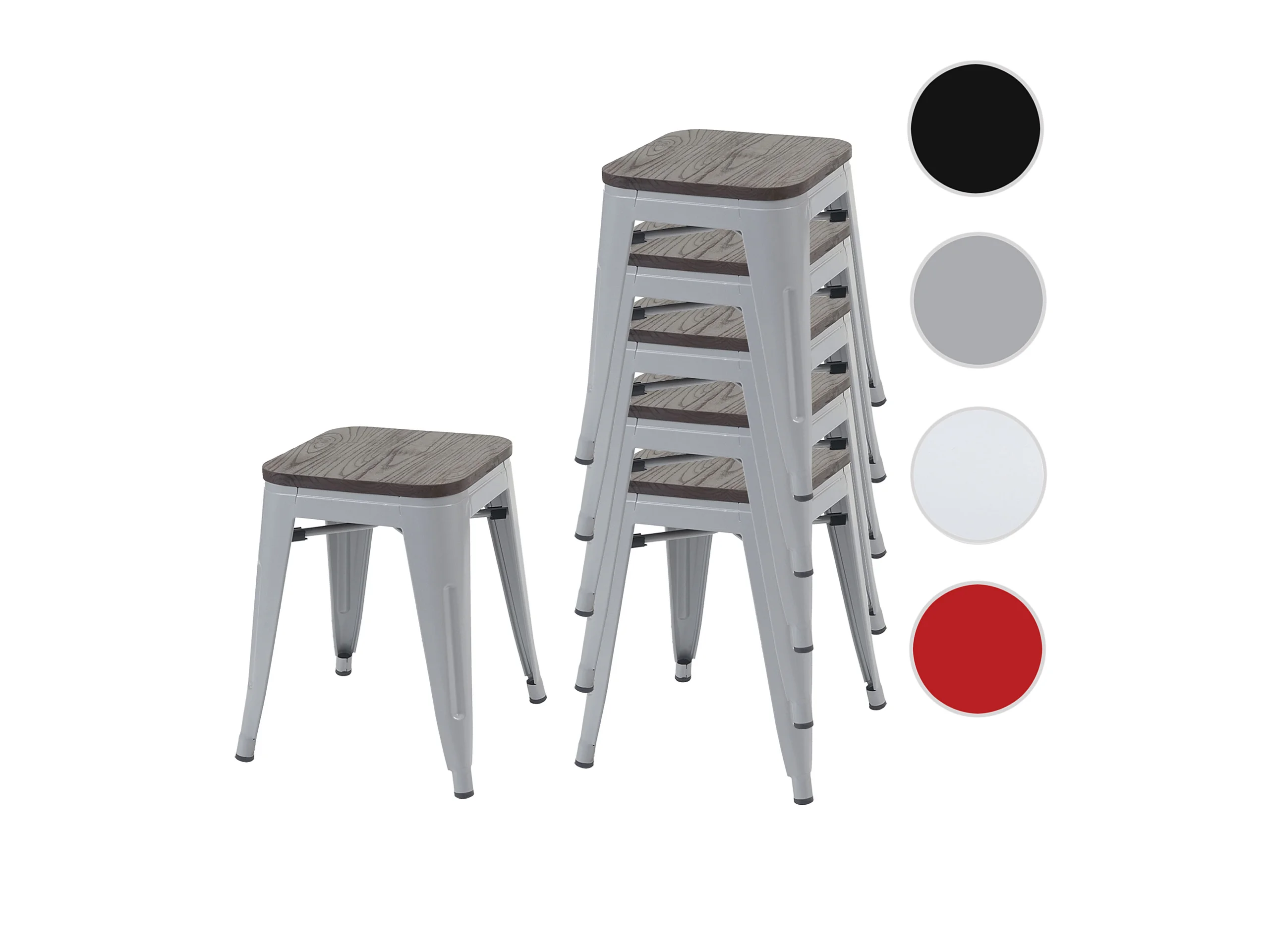 6x tabourets MCW-A73, assise en bois incluse, gris